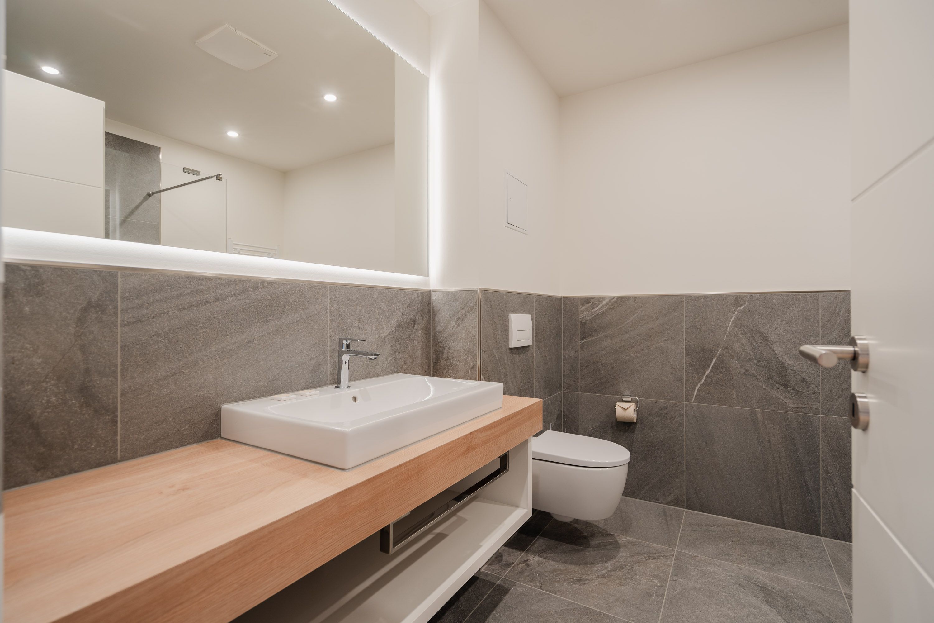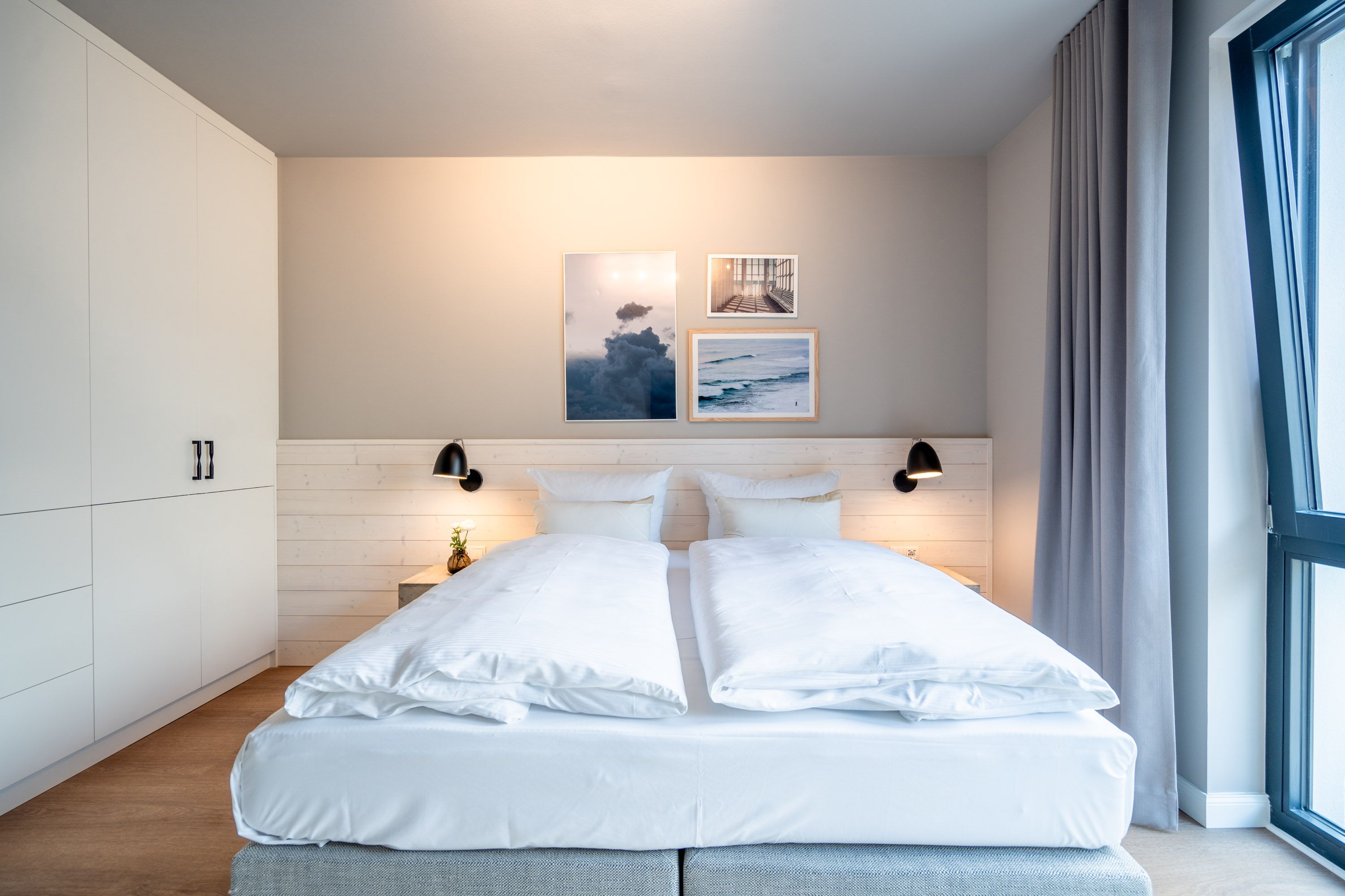 Die 2024 fertig gestellte Strandterrasse liegt direkt an der belebten Strandpromenade und bietet einen einzigartigen Ausblick auf die Grand Dame der historischen Seebrücken sowie die historische Konzertmuschel, einem beliebten Treffpunkt für Kunst und Kultur. Dahinter liegt die Ostsee ein Panorama, das zu den schönsten in den Kaiserbädern gehört. Es ist wie das Abtauchen in eine andere Zeit. In eine Zeit, in der man mit Stock, Sonnenschirm und Hut fürs Sehen und gesehen werden über die Promenade schlenderte; aber auch in eine Zeit, in der damals wie heute Zeit einmal für eine kurze Weile keine Rolle spielt. Weil man angekommen ist im Loslassen, Entspannen und Genießen. Es ist dieser besondere Geruch nach Meeresluft und Freiheit, der in Erinnerung bleibt. Dazu die Bilder, die man mitnimmt. Von langen Strandspaziergängen, vom Lachen in fröhlich schäumenden Ostseewellen, von der Zeit in einem wunderschönen Urlaubsdomizil. Denn genau das ist die Strandterrasse mit ihren 56 modernen und exklusiven Ferienappartements direkt gegenüber der Ahlbecker Seebrücke. Die Ein-, Zwei- oder Dreizimmerwohnungen zwischen 40 und 70 Quadratmeter groß sind von einer Innenarchitektin gemeinsam mit unserem Erfahrungsschatz an Gästewünschen mit viel Liebe zum Detail und ganz individuell konzipiert worden. Entspannung und Wohlfühlen stehen an erster Stelle. Alles ist aufeinander abgestimmt und sorgt für eine gemütliche Atmosphäre. Wählen Sie zwischen einem Domizil in einem hellen, sandfarbenen Designkonzept oder einem Appartement mit anthrazitfarbenen Farbakzenten. Alle Appartements verfügen gleichermaßen über eine stilvolle und komfortable Einrichtung, die passgenau angefertigt worden ist, sowie über moderne Küchen und Bäder. Jedem Schlafzimmer ist ein eigenes Bad mit Dusche zugeordnet (außer App. B4.5). Die Appartements besitzen fast alle einen Balkon viele schauen sogar zur Ostsee hinaus. Die meisten Feriendomizile haben einen Elektrokamin und Infrarotsaunen. Im Erdgeschoss befindet sich ein separater Gemeinschaftsraum für Fahrräder. Außerdem besteht die Möglichkeit, im Gemeinschaftswaschraum 2 Waschmaschinen & Trockner zu nutzen. Ergänzt wird das Angebot durch eine Gemeinschaftssauna, die täglich von 11:00 bis 22:00 Uhr nutzbar ist. In der Tiefgarage (Einfahrtshöhe 2,03 Meter) steht für jede Wohnung 1 Pkw-Stellplatz zur Verfügung. Ist alles zur Zufriedenheit untergebracht? Dann kann der Urlaub ja beginnen. Und beim Blick vom Balkon über die Ostsee treffen sich zum Sonnenaufgang das Heute und das Damals. Gelassenheit legt sich beim Gang hinunter an den Strand auf die Seele. Jetzt darf die Zeit stehenbleiben.