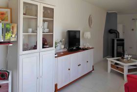 Der vordere Bereich des Bungalows begeistert mit einer praktischen, voll ausgestatteten Miniküche und einem gemütlichen Wohnbereich, der zum Entspannen einlädt. Weiter hinten erwartet Sie ein kleiner, aber feiner Essbereich mit viel Stauraum, sowie ein herrlicher Schlafbereich mit einem komfortablen Doppelbett. Wenn es draußen mal kühl oder regnerisch wird, können Sie sich am knisternden Kamin so richtig wohlfühlen!