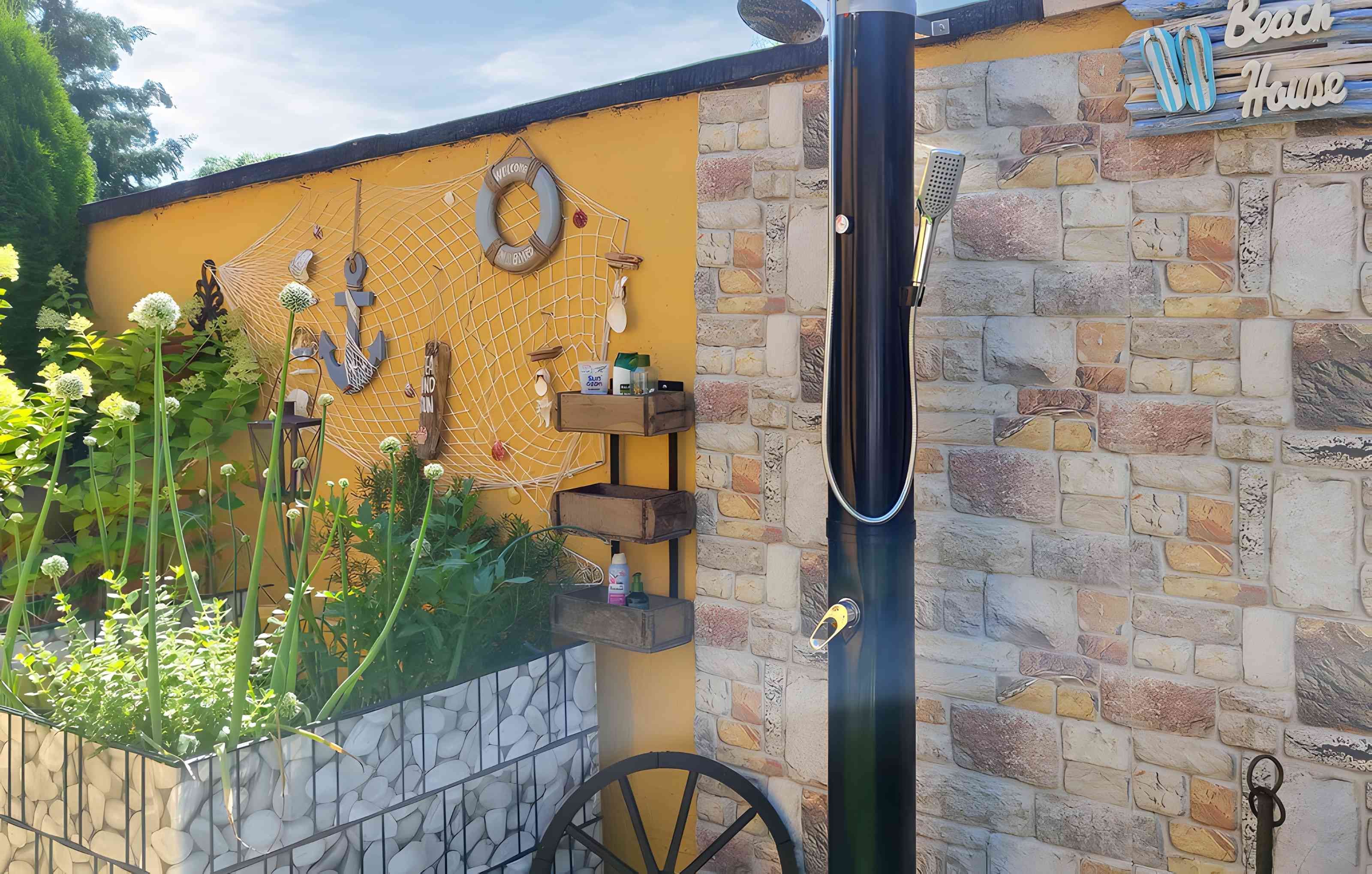Im Außenbereich können Sie auf der möblierten Terrasse die frische Luft genießen, während der Grill für ein entspanntes Abendessen sorgt. Ein gesicherter Fahrradabstellraum sowie ein Parkplatz direkt vor dem Haus machen Ihre Anreise und Ausflüge noch angenehmer. Und das Beste: Der liebevoll gestaltete Garten, der sogar eine Solardusche bietet, lädt zum Verweilen und Entspannen ein.