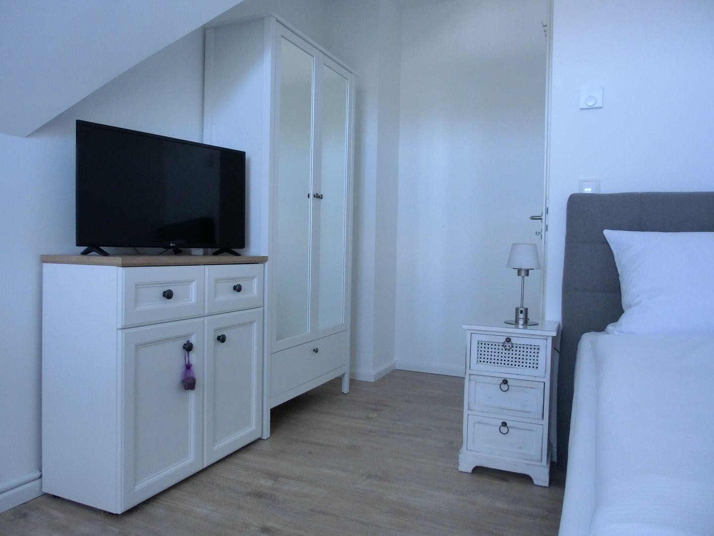 - 2 separate Schlafzimmer vorhanden mit je einem Doppelbett (160 cm x 200 cm, geteilte Matratze) und 2 zusätzliche TV-Geräte