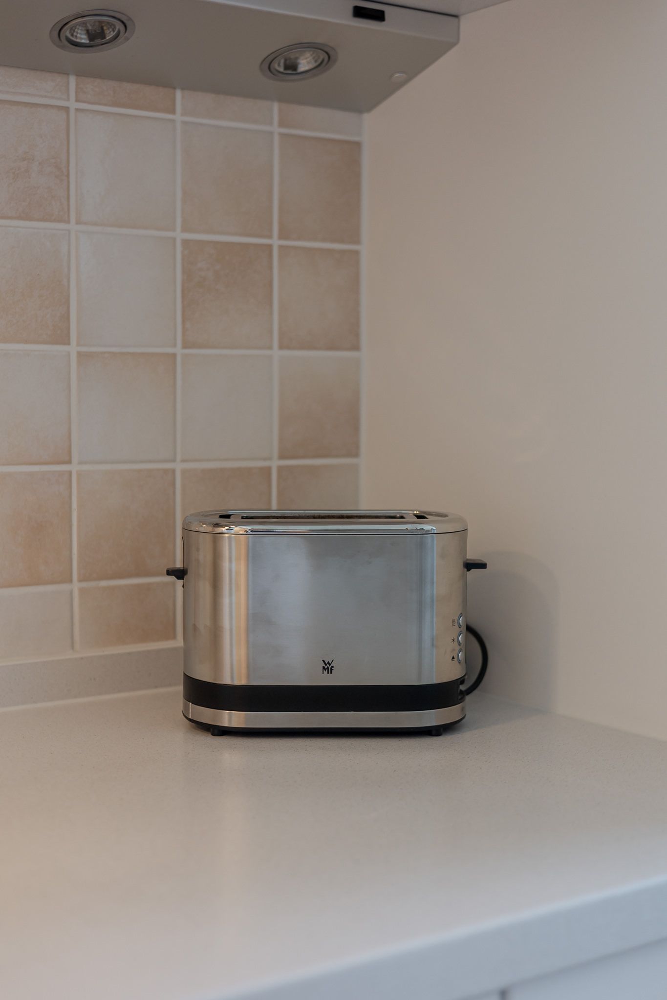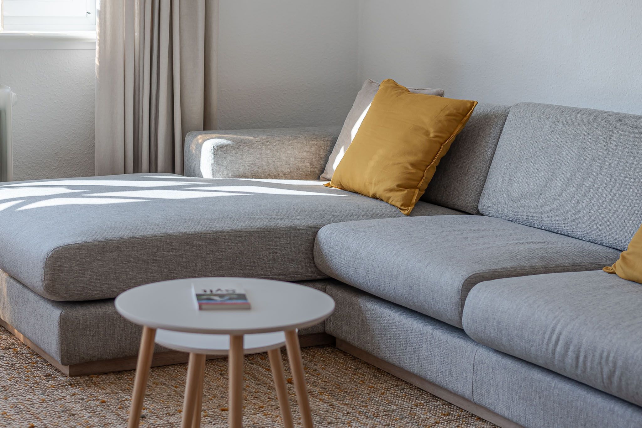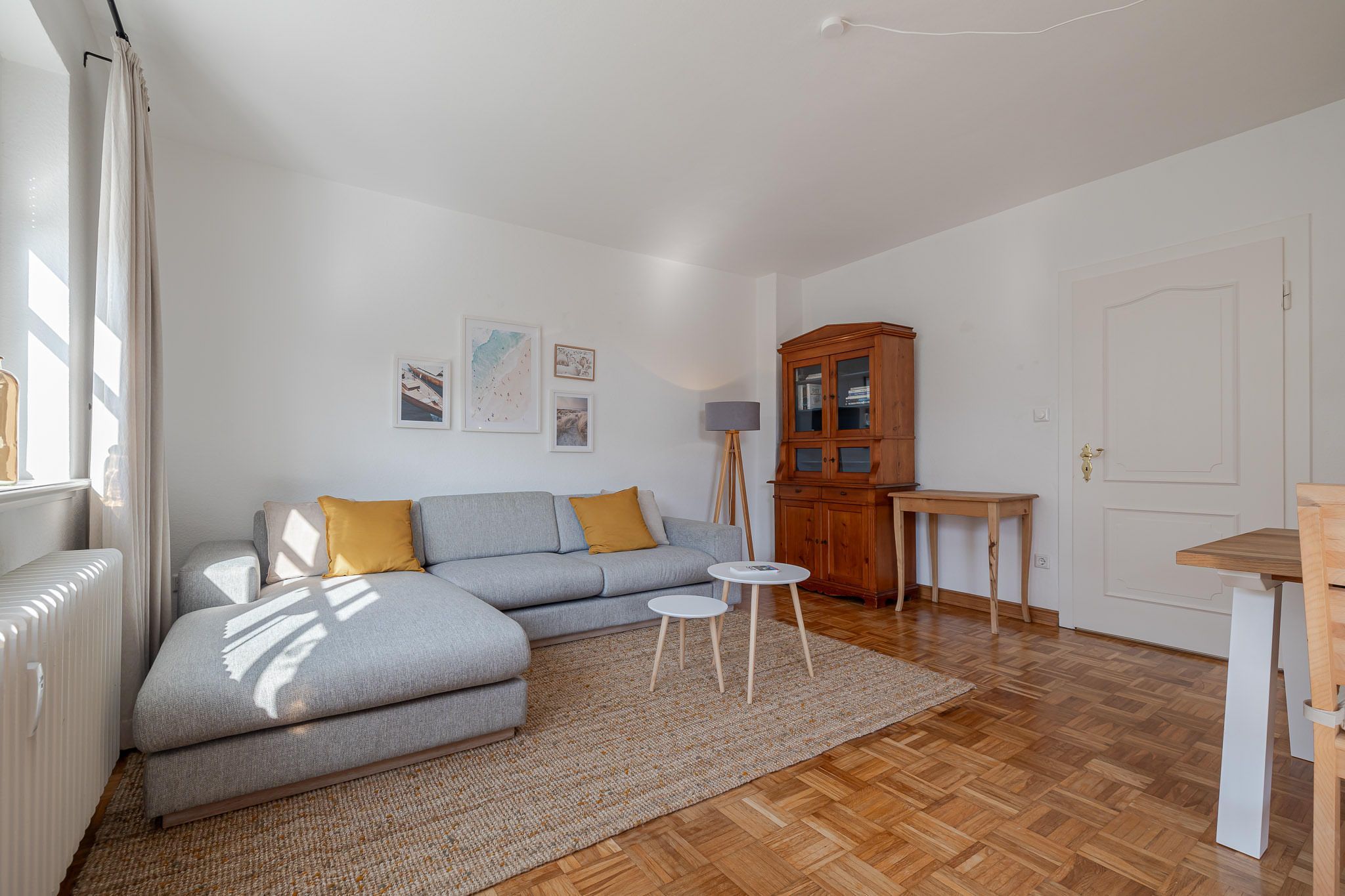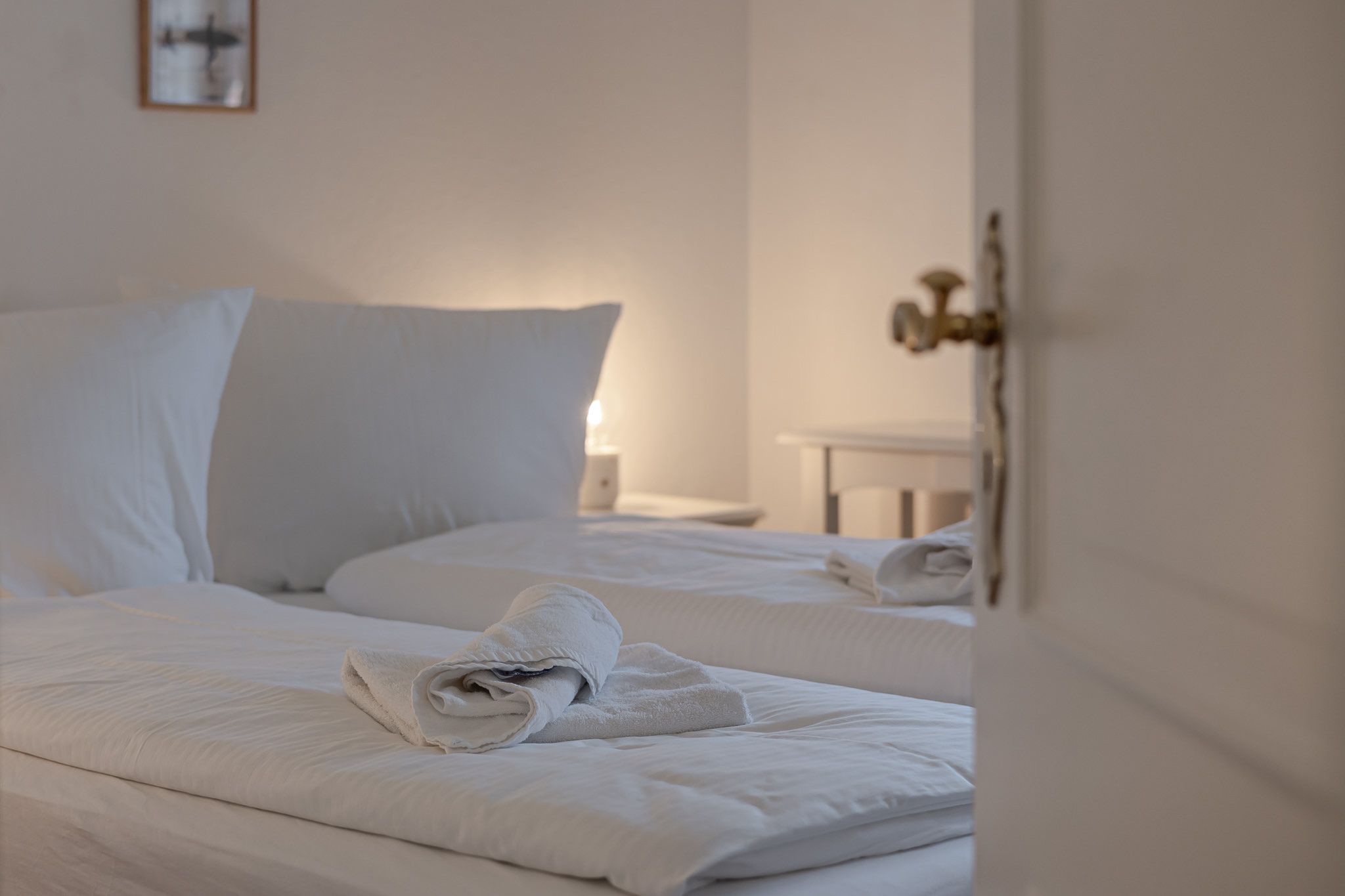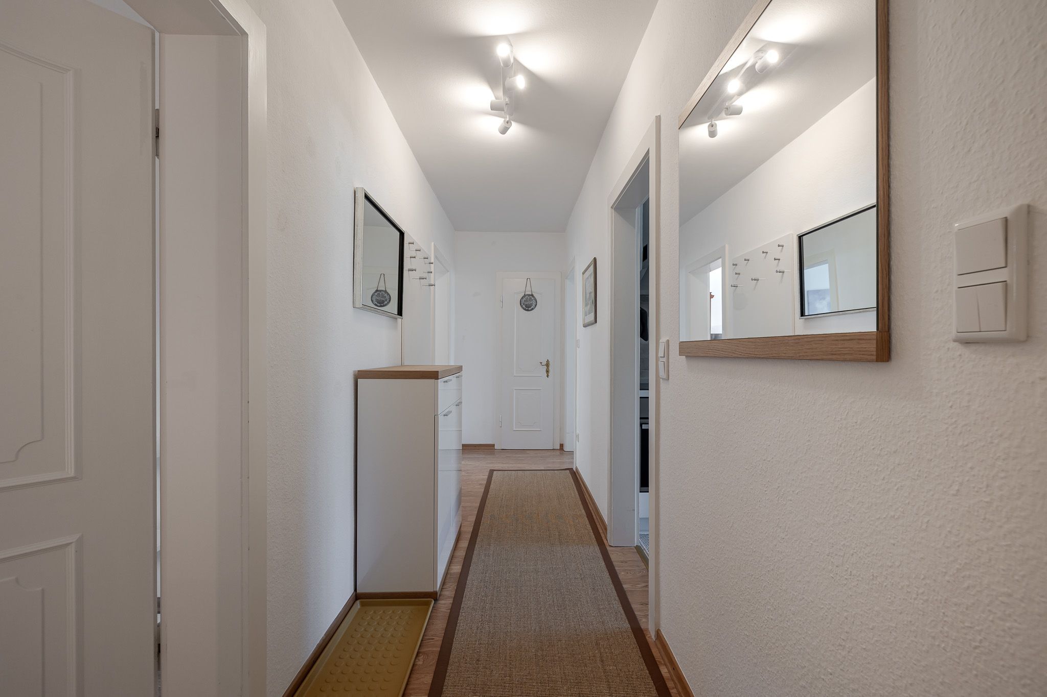Die Wohnung verfügt über zwei gemütliche Schlafzimmer sowie ein modernes Badezimmer mit einer komfortablen, bodentiefen Dusche. Die voll ausgestattete Küche verfügt nicht nur über eine Spülmaschine, sondern auch eine Waschmaschine ideal auch für längere Aufenthalte. Im angrenzenden Wohnzimmer lädt die großzügige 3 Personen Couch mit Recamiere zum Entspannen ein.