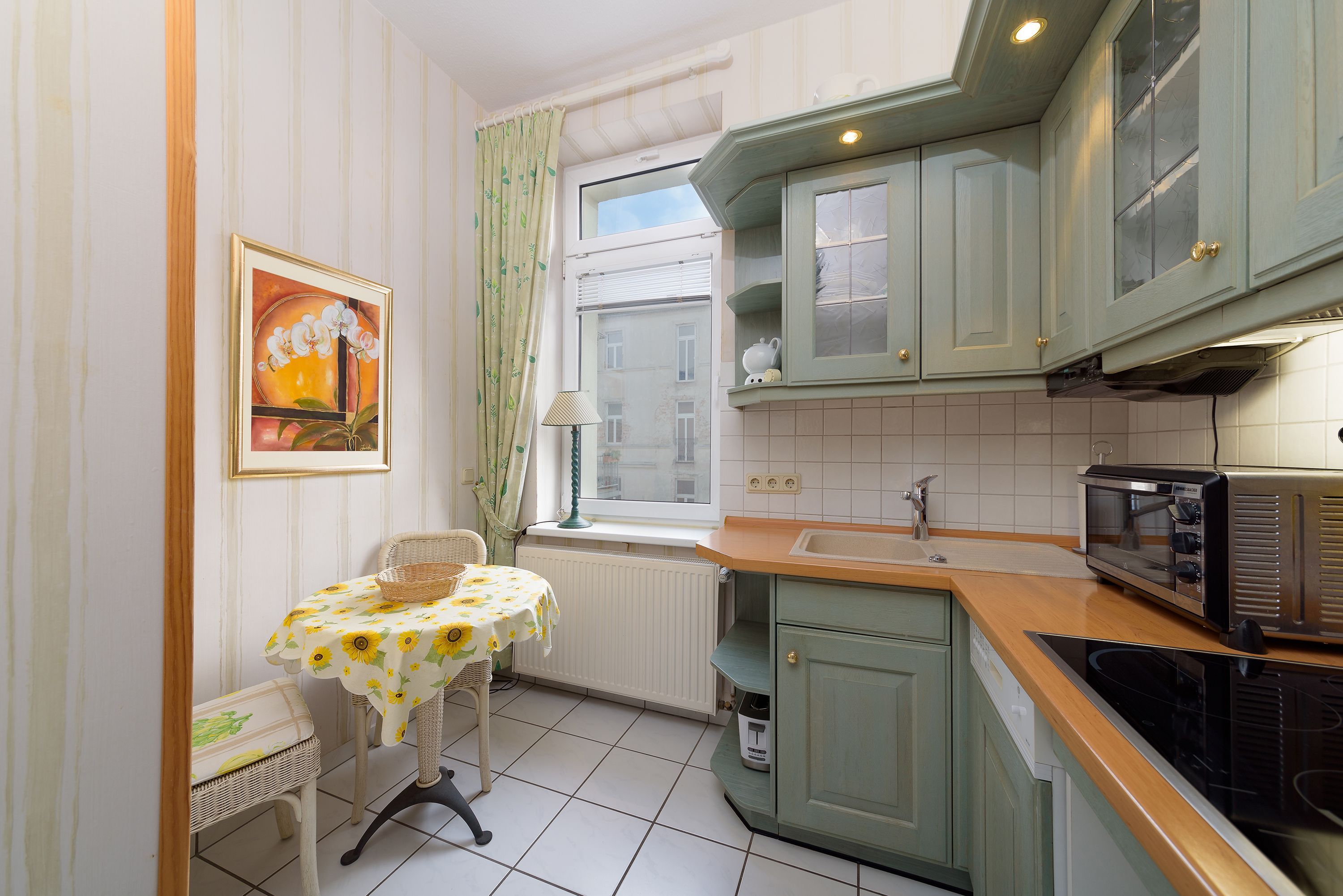 • separate, komplett ausgestattete Küche mit Essecke