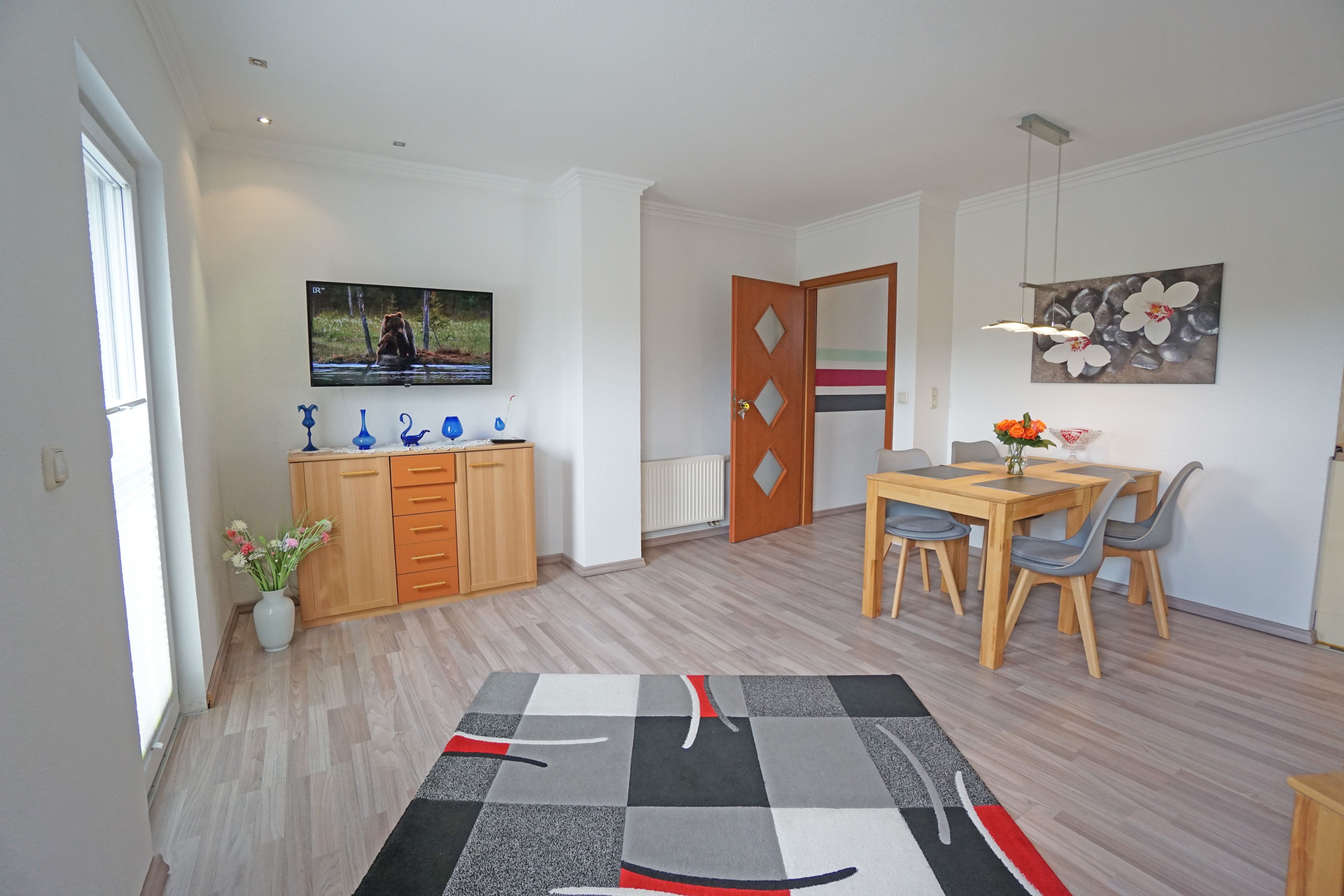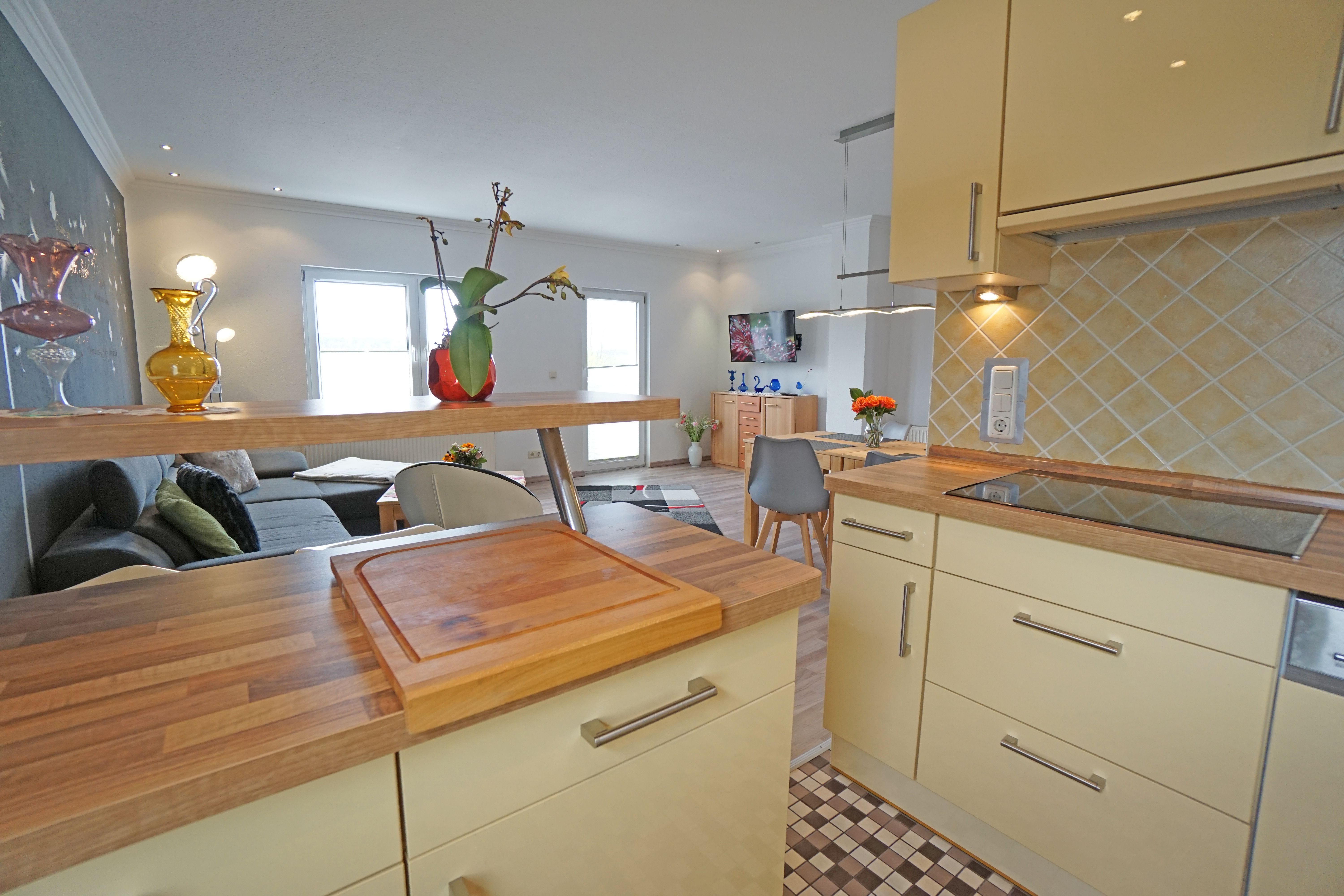 Die moderne Ferienwohnung (75qm) verfügt über 2 Schlafzimmer für max. 3 Personen. Vom großen Wohnzimmer mit offener Küche und Esstisch im ersten Obergeschoss gelangt man auf die großzügige möblierte Sonnenterrasse. Weiterhin verfügt die Wohnung über ein Duschbad. Das Grundstück ist komplett umzäunt. Für Ihren PKW gibt es einen Außenstellplatz.