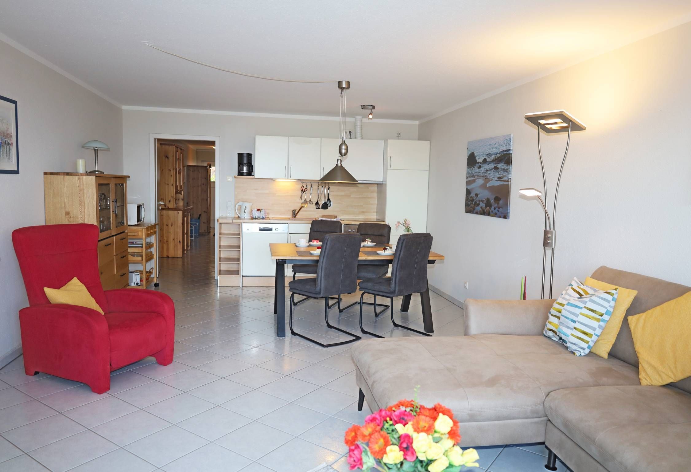 Ein Parkplatz in der Tiefgarage (Einfahrtshöhe max. 2 m) ist selbstverständlich ebenfalls kostenlos vorhanden. Während der Sommermonate können Sie zudem kostenfrei einen Strandkorb nutzen. Für kleine Haustiere (max. ein kleiner Hund) besteht die Möglichkeit, gegen Gebühr ein Tier mitzubringen.