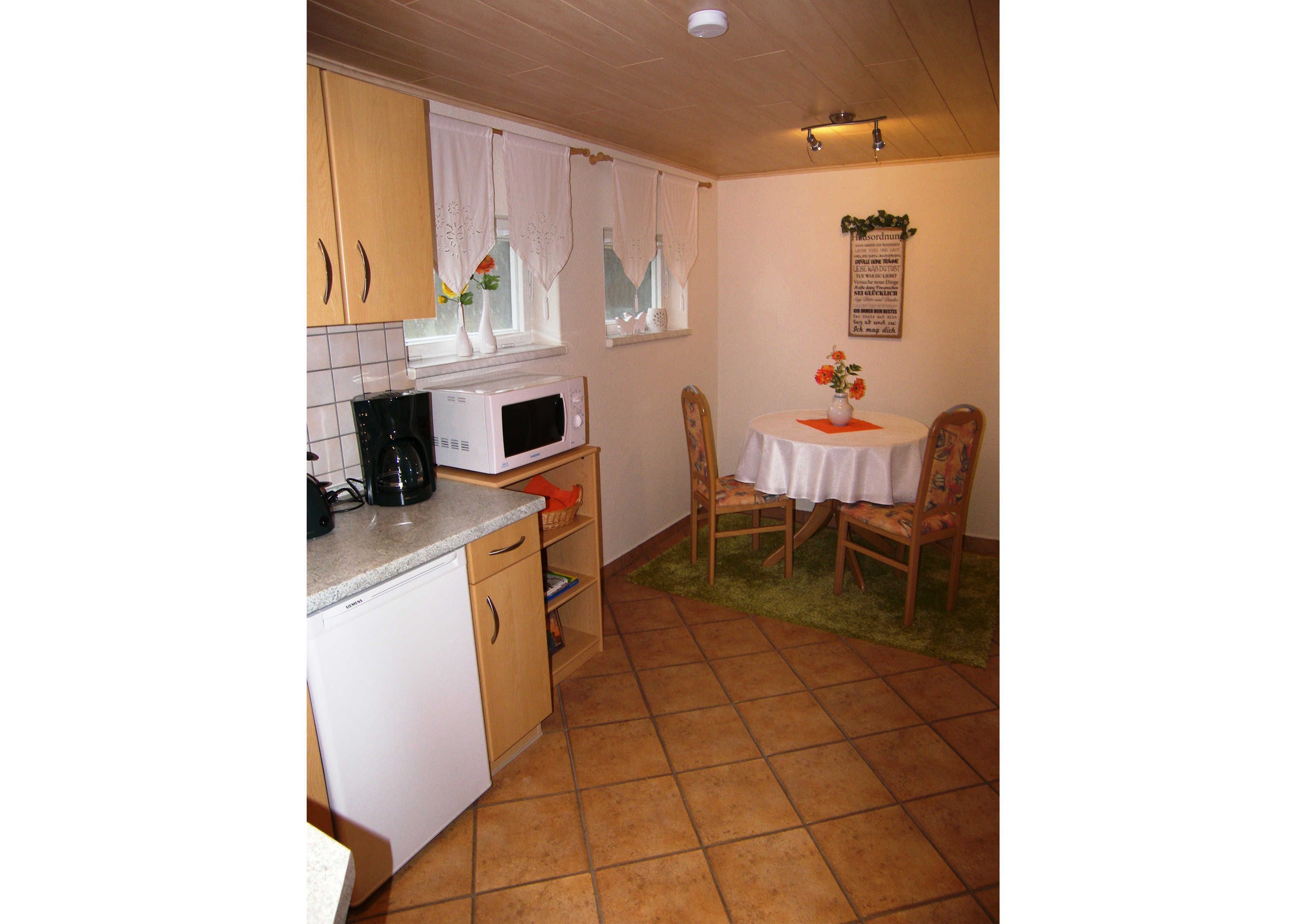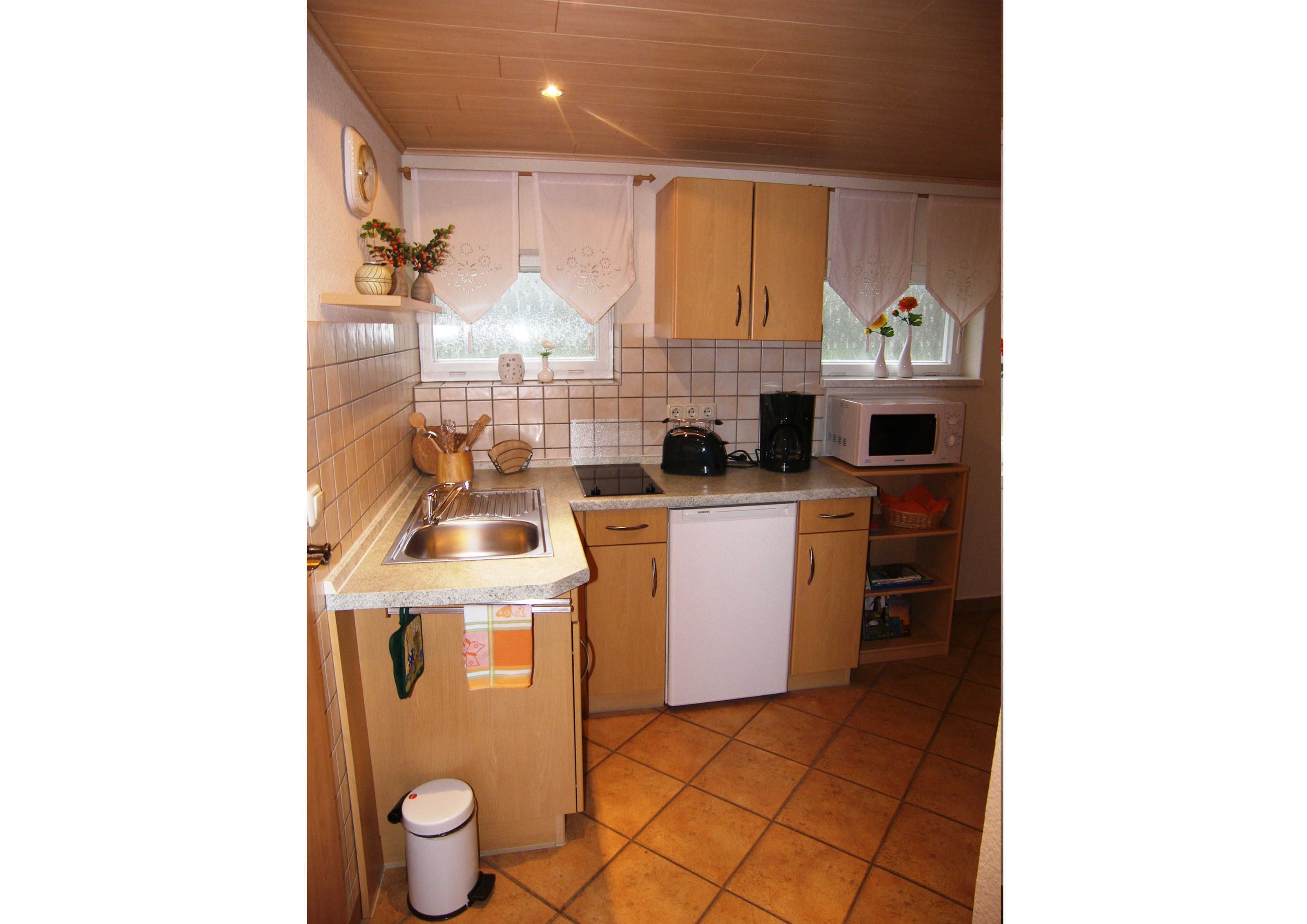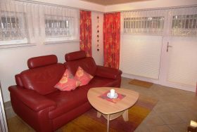 Die gemütliche 1 Raum Ferienwohnung für 2 Personen liegt im Souterrain des Hauses und verfügt über einen separaten Eingang. Im Wohnraum befindet sich eine Couch, ein Flachbild-TV mit DVD-Player und ein Radio mit CD-Player. Optisch getrennt, befindet sich im Wohnraum auch eine Schlafmöglichkeit (Doppelbett 1,60x2,00m) mit Kleiderschrank. Die separate Küche verfügt über 2 Kochplatten, Kühlschrank mit Gefrierfach, Mikrowelle, Toaster und eine Kaffeemaschine. Das Bad ist mit Dusche und WC, sowie einem Fön ausgestattet. Die Fenster der Wohnung sind mit einem Insektenschutzgitter versehen.