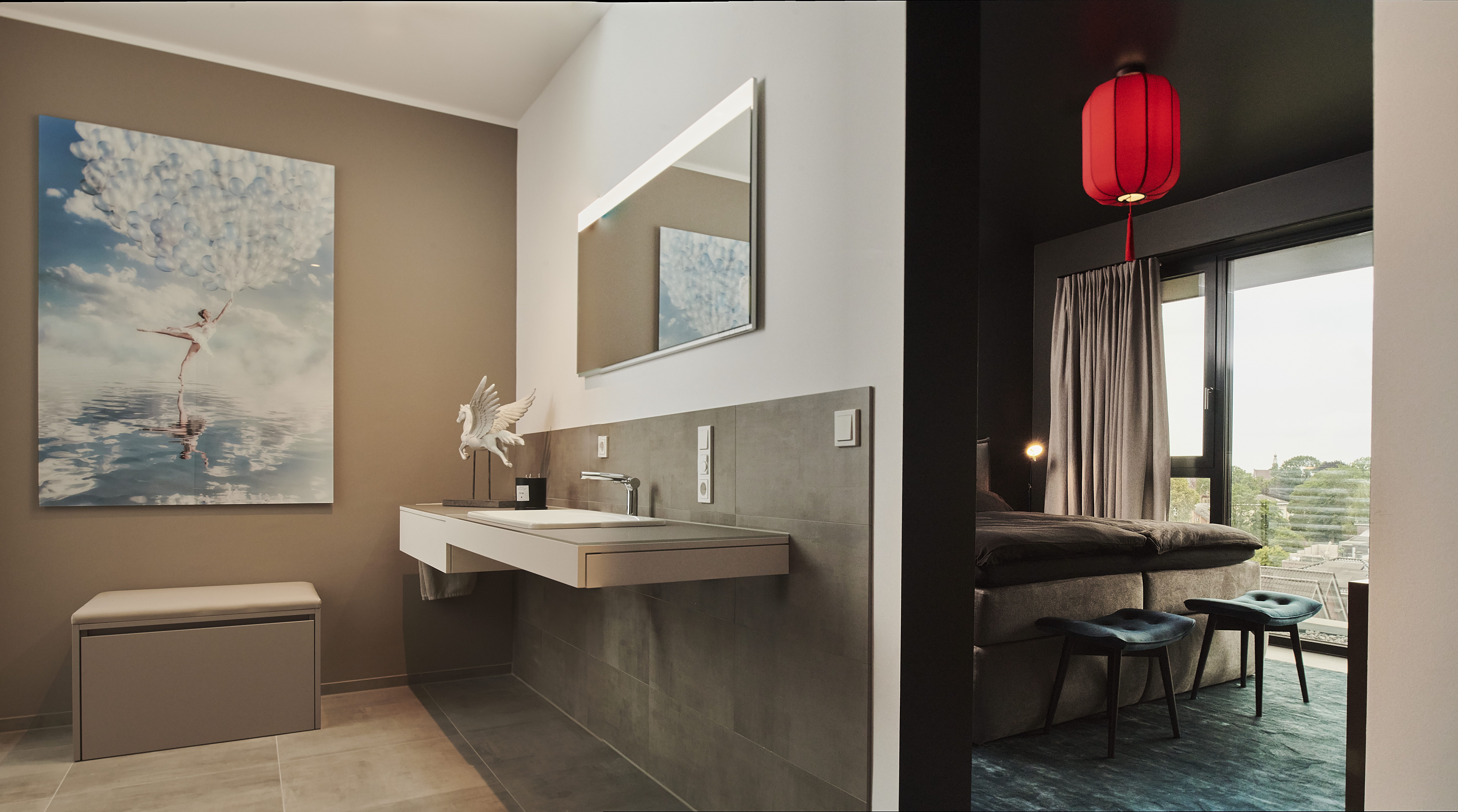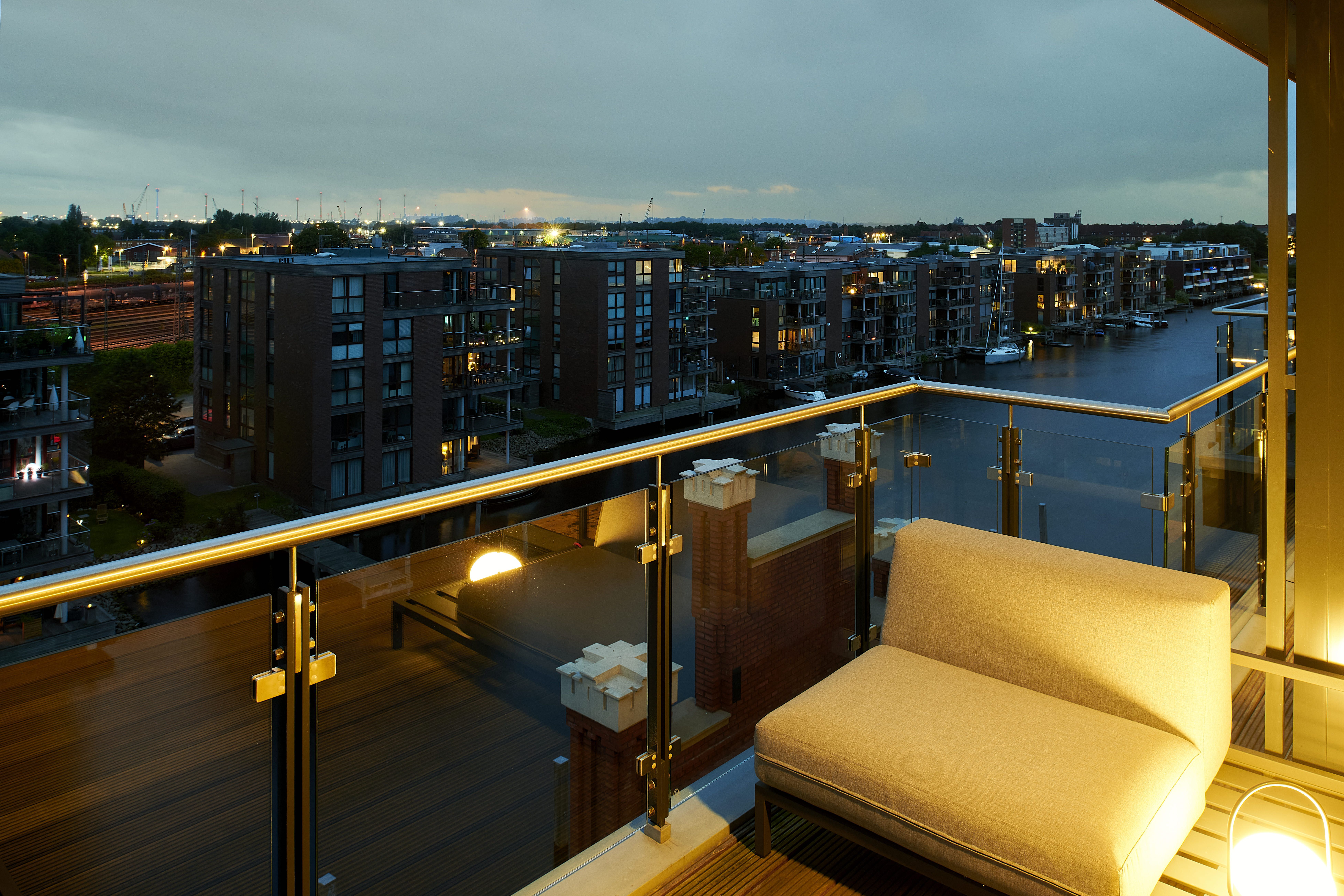 Unser exklusives Penthouse Speicher 60 bietet auf 120qm Wohnfläche höchsten Wohnkomfort in bester Lage direkt am Neuen Delft in Emden. Große Fensterfronten eröffnen einen atemberaubenden Blick über die Stadt und die großzügige Dachterrasse lädt zu entspannten Stunden unter freiem Himmel ein. Das Herzstück des Penthouses ist das luxuriöse Schlafzimmer mit einem angrenzenden, eleganten Badezimmer en Suite. Hier erwartet Sie ein besonderes Highlight: eine eigene KLAFS Sauna, die Ihnen eine Oase der Entspannung und Erholung bietet. Zusätzlich sorgt ein separates Gäste-WC für Komfort. Das stilvoll eingerichtete Büro bietet nicht nur einen ruhigen Arbeitsplatz mit Weitsicht, sondern lässt sich dank der integrierten Schlafcouch auch ideal als weiteres Schlafzimmer für den Urlaub mit der Familie oder Freunden nutzen. Das gesamte Penthouse wurde äußerst exklusiv, mit viel Liebe zum Detail und Designerelementen ausgestattet. Die zentrale Lage direkt am Neuen Delft verbindet Urbanität mit Exklusivität. Zahlreiche Cafés, Restaurants und Einkaufsmöglichkeiten befinden sich in unmittelbarer Nähe, während das Penthouse selbst eine ruhige und private Atmosphäre gewährleistet. Hier wohnen Sie mitten im Geschehen und genießen dennoch eine erholsame Ruheoase hoch über den Dächern der Stadt. Ein eigener PKW-Stellplatz, sowie ein Aufzug gehört selbstverständlich ebenfalls zur AusstattungSollten Sie mit einem E-Auto anreisen, verfügt das Objekt auch über eine Ladesäule.