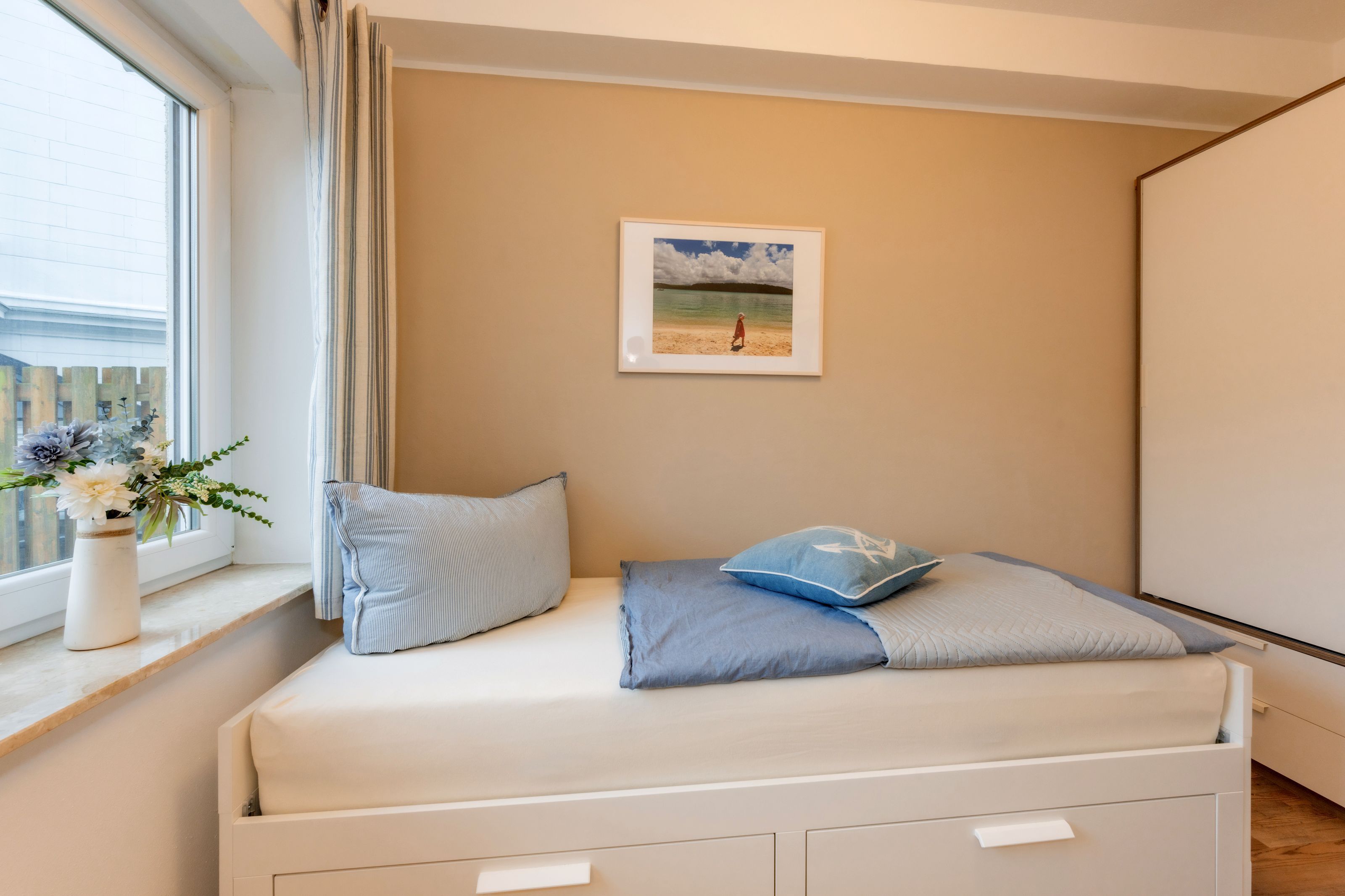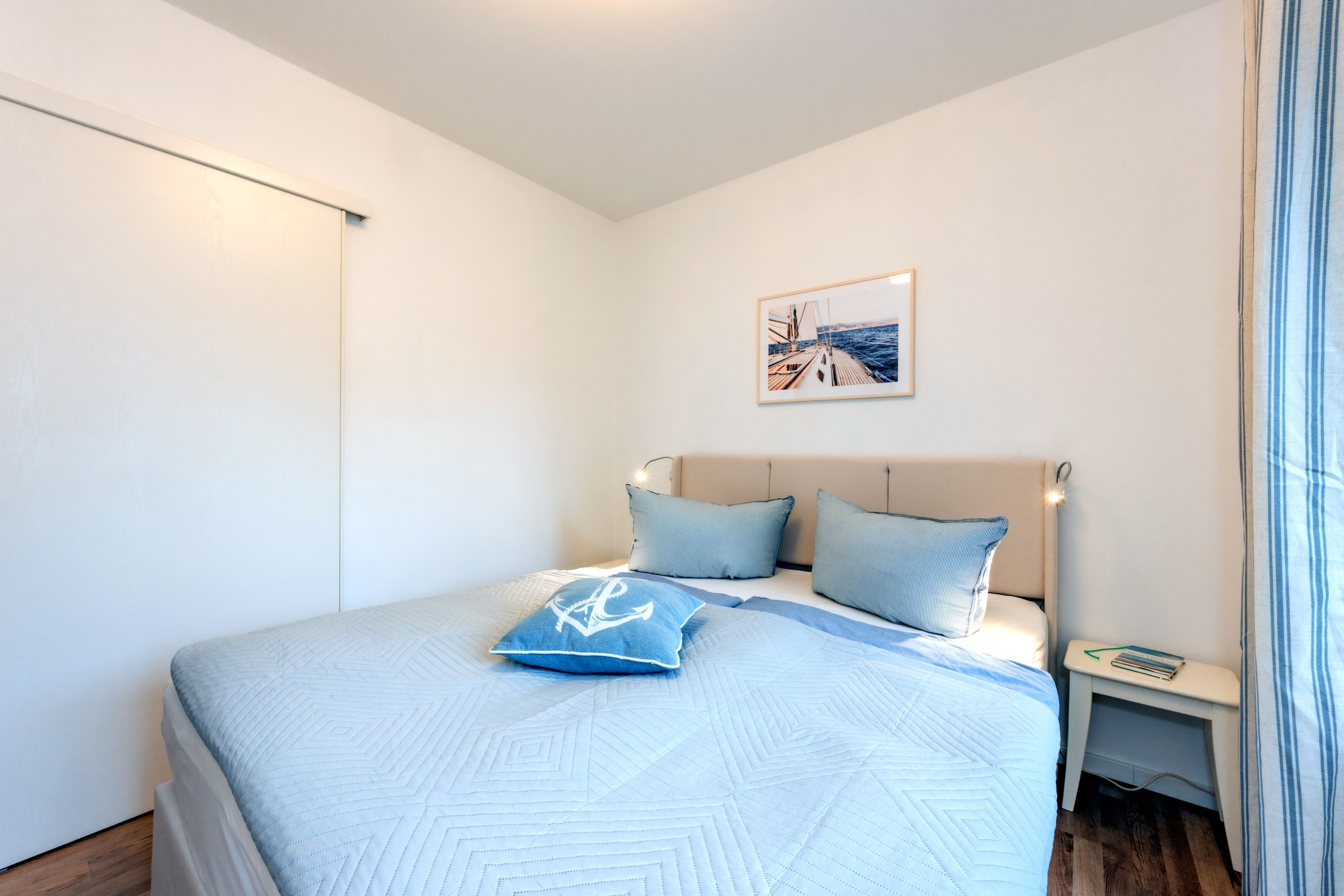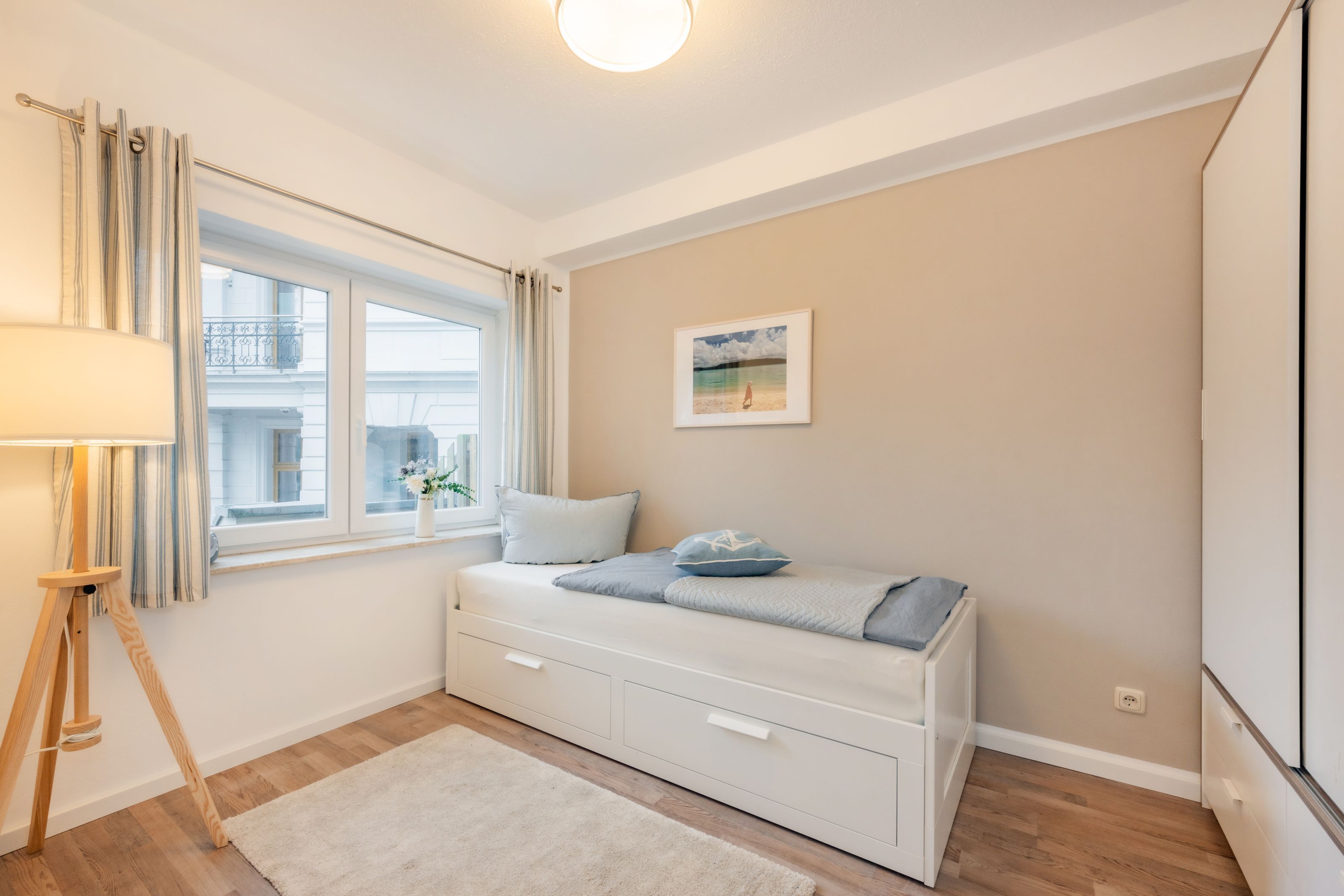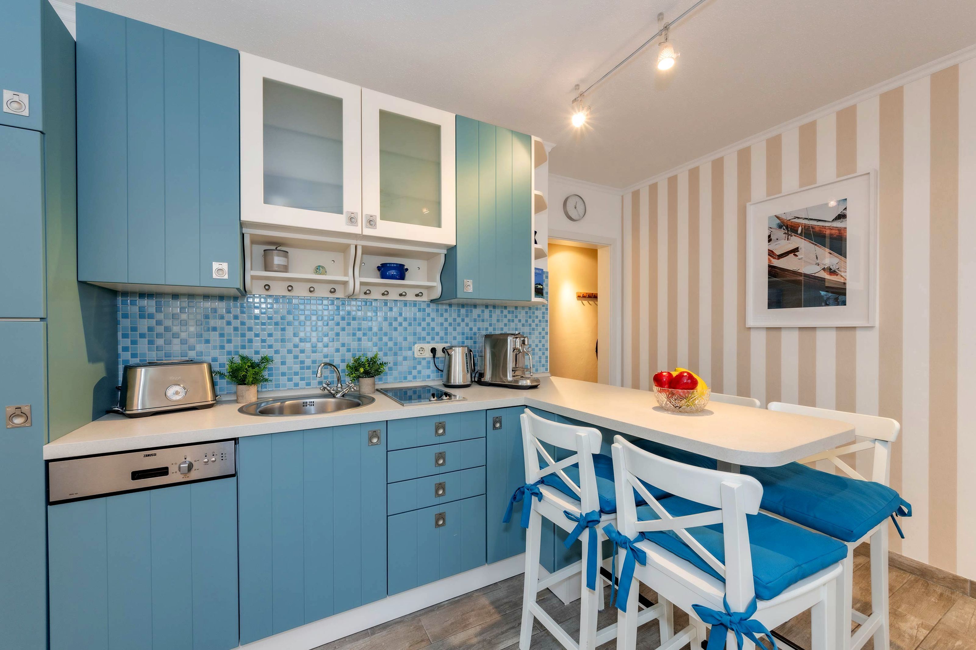 Eine moderne, im maritimen Stil eingerichtete 3-Raum-Nichtraucher-Ferienwohnung (ca. 50 qm) im Hochparterre des Appartementhauses (mit Fahrstuhl) sowie einer Terrasse, zu welcher Sie über 4 kleine Stufen einer Metalltreppe gelangen. Die Wohnung ist für 4 Erwachsene (ggf. zzgl. einem Kleinkind bis 3 Jahre) ausgestattet.