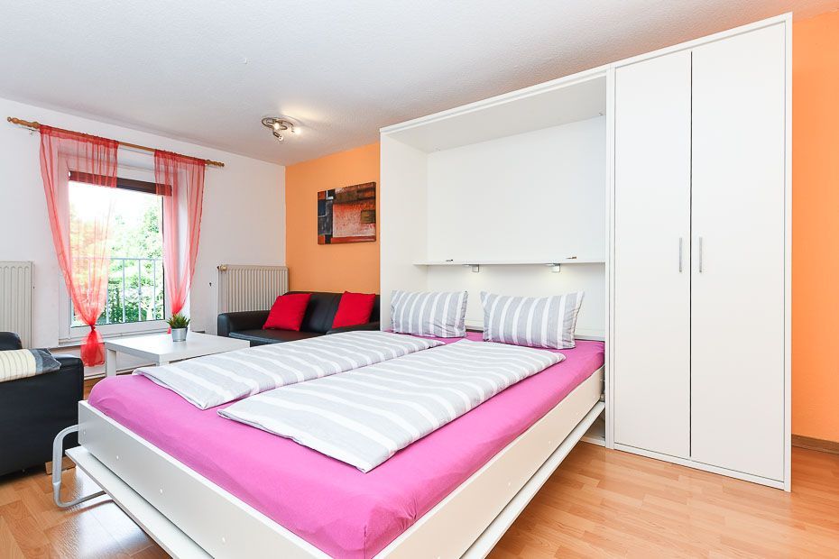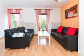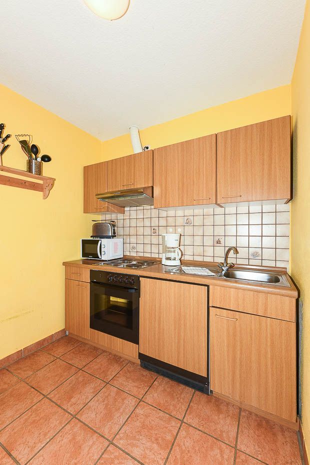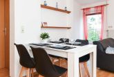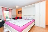 Größe ca. 40 Quadratmeter, Wohn- und Schlafraum, Küche, Schlafzimmer, Badezimmer mit Dusche, Waschtisch und WC, Obergeschoss, Terrasse (Sitzgruppe im Garten), optimal für 2 bis 4 Personen und zusätzlich ein Kleinkind.
