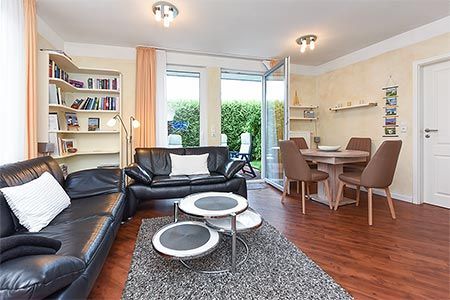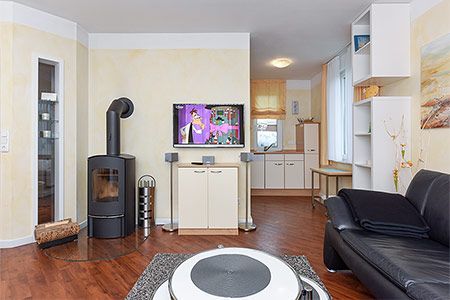 Da gibt es die schicken Ledermöbel der Wohnraumgarnitur, einen Kamin, einen tollen Parkettfußboden durch das komplette Haus und die gemütliche Terrasse mit dem Steingrill.