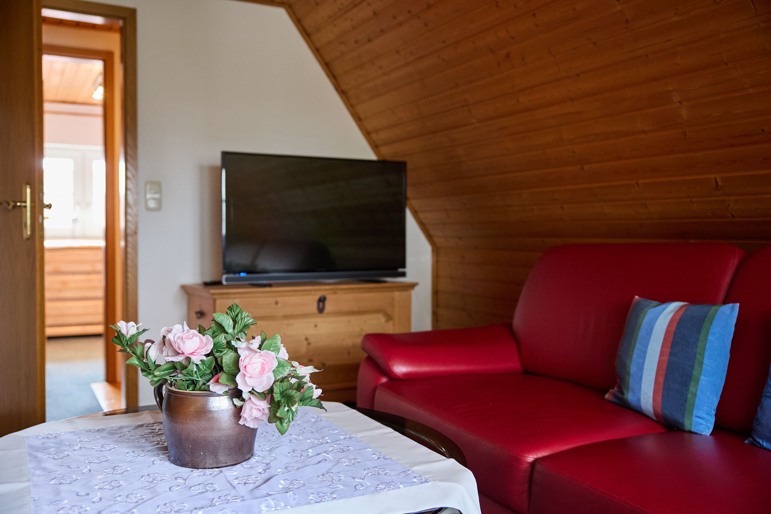 ein weiteres Wohnzimmer im Dachgeschoss mit Fernseher