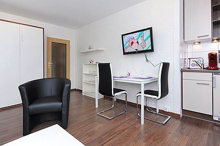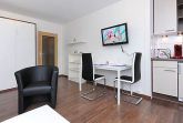 Größe ca. 28 Quadratmeter, Wohn- und Schlafraum mit integriertem Küchenbereich, Badezimmer mit Dusche, Waschtisch und WC, Erdgeschoss, Internetzugang über WLAN möglich, optimal für 2 Personen.