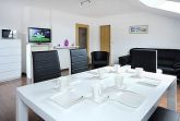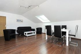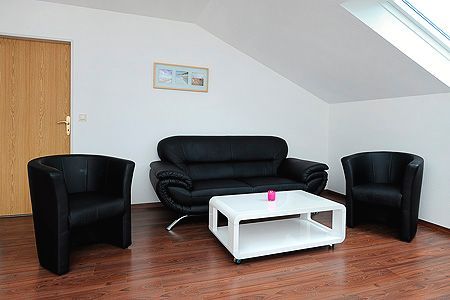 Größe ca. 60 Quadratmeter, Wohnzimmer, Küche, Schlafzimmer, zweites separates, Schlafzimmer/Kinderzimmer, Badezimmer mit Dusche, Waschtisch und WC, Obergeschoss, Internetzugang über WLAN möglich, optimal für 2 bis 5 Personen.