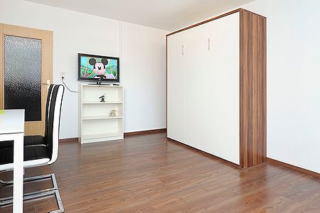 Größe ca. 45 Quadratmeter, Wohn- und Schlafraum mit räumlich abgeteiltem Küchenbereich, zweites separates Schlafzimmer/Kinderzimmer, Badezimmer mit Dusche, Waschtisch und WC, Obergeschoss, Internetzugang über WLAN möglich, optimal für 2 bis 4 Personen.
