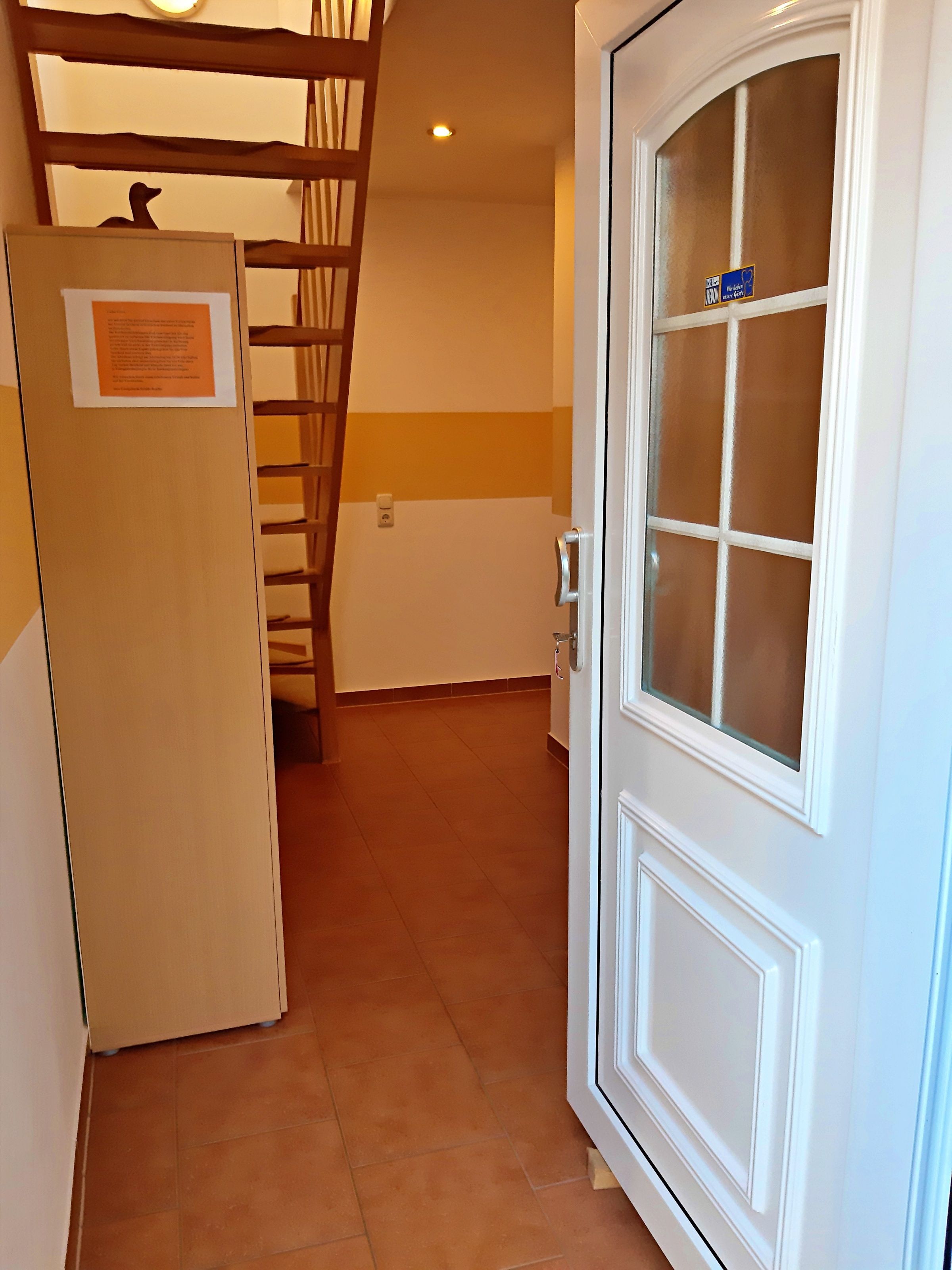 Das 2-Zimmer-Ferienhaus im Erd- und Obergeschoss verfügt über ca. 47m² Wohnfläche aufgeteilt in 1 Schlafzimmer (Erdgeschoss), 1 Bad (Erdgeschoss), Flur und Eingang (im Erdgeschoss), 1 kombiniertes Wohnzimmer mit Küchenzeile und Essplatz (Obergeschoss) und 1 Balkon. Zur Wohnung gehört eine direkt angrenzende Balkon und ein Kfz-Stellplatz auf dem Grundstück.