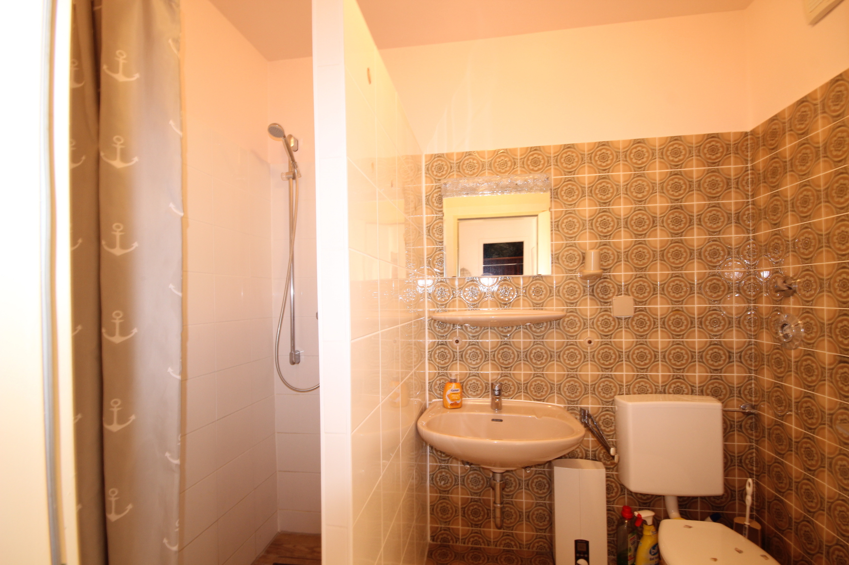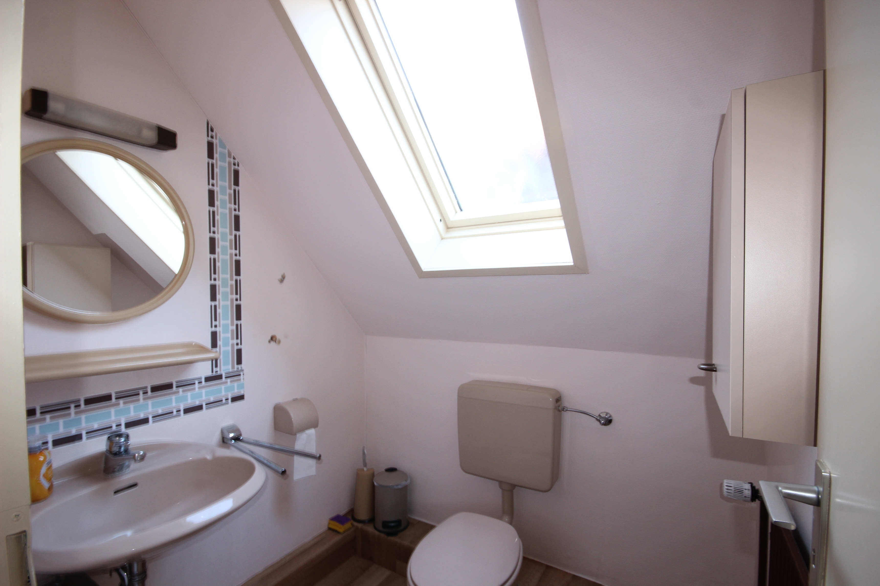 Ein modernes Badezimmer mit Dusche sowie ein separates Gäste-WC sorgen für zusätzlichen Komfort.