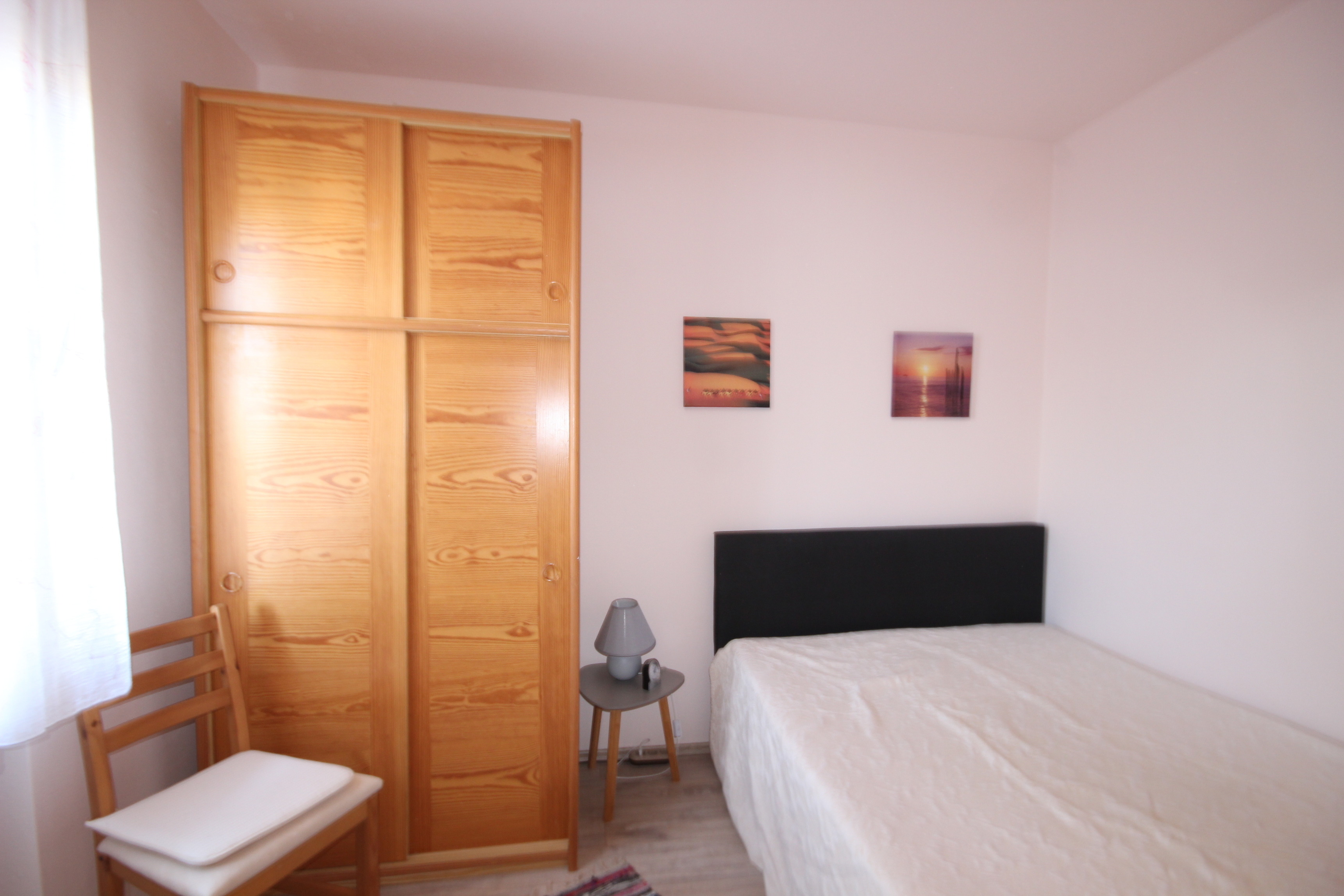 Die Wohnung bietet zwei Schlafzimmer mit komfortablen Doppelbetten (160 x 200 cm und 180 x 200 cm) sowie zusätzliche Schlafmöglichkeiten auf einem Schlafsofa.