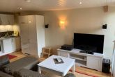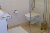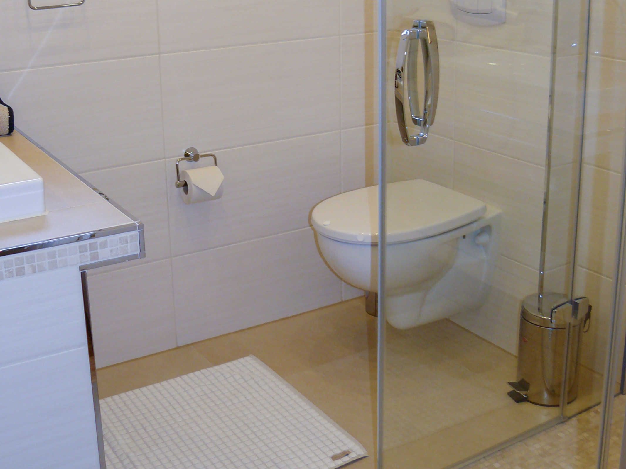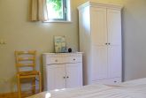 Die Küche ist mit Geschirr, Ceran-Herd, Abzugshaube, Spülmaschine, Wasserkocher, Toaster, Kaffeemaschine und Kühlschrank mit Gefrierfach vollständig ausgestattet. Der Tisch für die Küche ist ein rustikaler Tresen mit vier Hochstühlen, zwei davon für Kinder. Im Zentrum des Wohnzimmers befindet sich eine gemütliche Couch, die bei Bedarf als Schlafcouch (160x200) umfunktioniert werden kann. Von dieser hat der Besucher durch eine große Fensterfront einen Ausblick ins Grüne. Flachbild TV, Dolby-Surround Anlage, Radio und Internet-WLAN gehören ebenso ins Wohnzimmer. Das Bad ist vom Flur aus über eine kleine Stufe erreichbar. Im Bad (mit Fenster) gibt es eine ebenerdige Klarglas-Dusche, ein WC und ein Waschbecken. Fön und Handtücher sind vorhanden. Für das warme Wasser und die Heizung ist die Sonne zuständig die bei uns ja bekanntlich bis zu 1300 Stunden im Jahr scheint. Zur Wohnung gehören auch ein ca. 80m² großer uriger Garten auf dem Grundstück des Vermieters mit Grill und Gartenmöbel sowie separaten PKW Stellplatz.