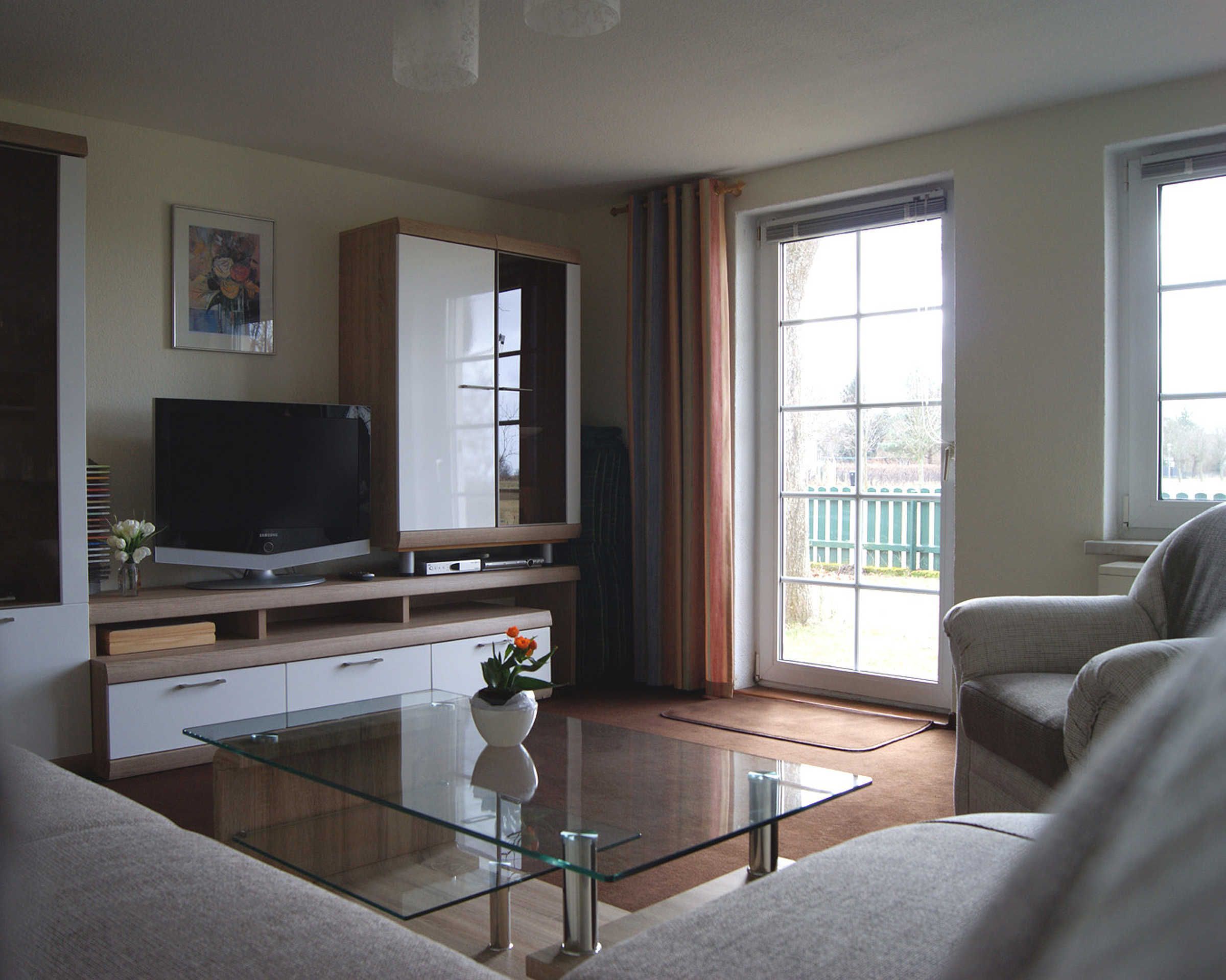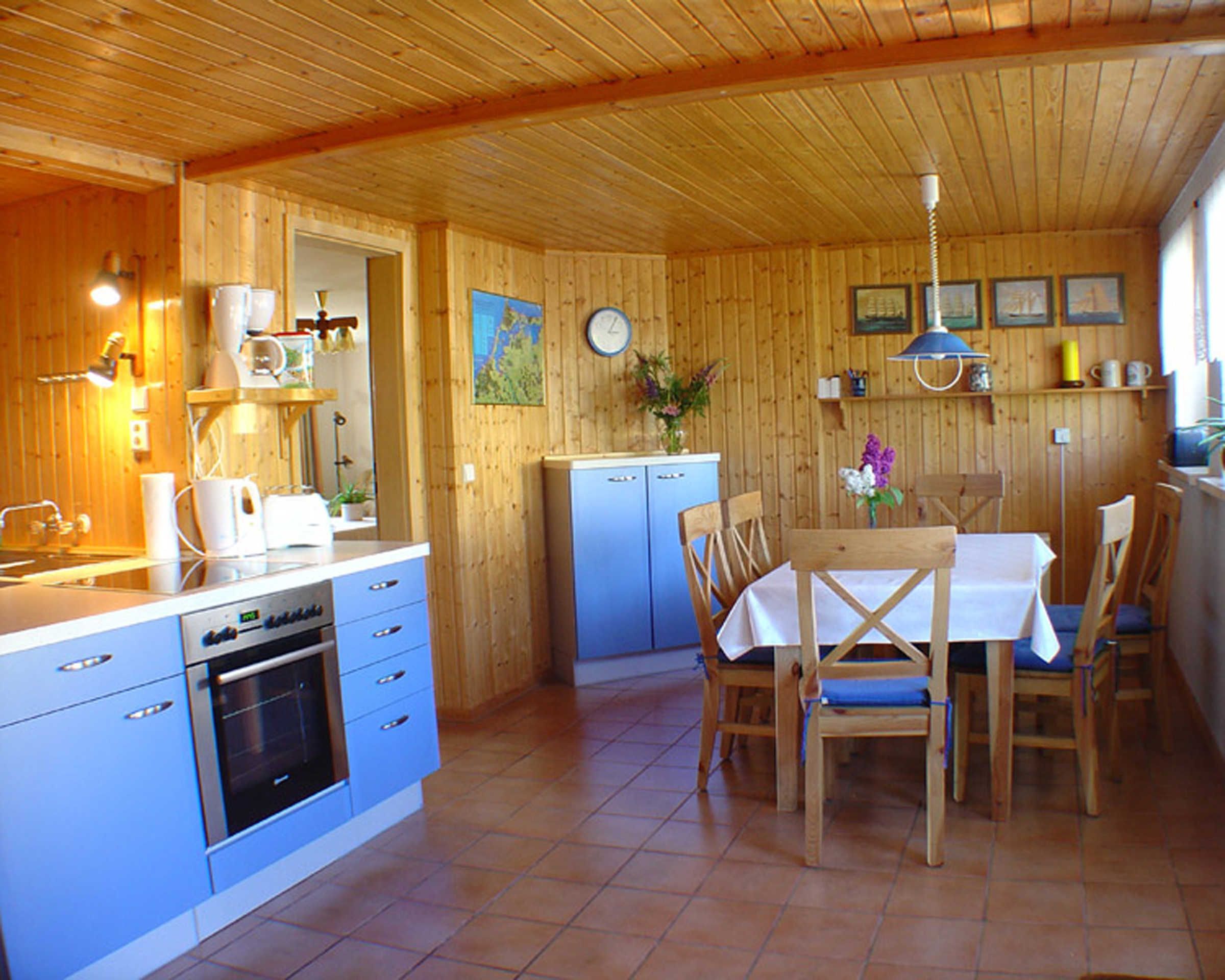 Sie mieten ein voll ausgestattetes, heizbares Ferienhaus für 2 Personen (Aufbettung möglich) - bestehend aus einem Wohnzimmer (SAT-TV, Radio, DVD/CD) mit einer Schlafcouch, einer großen Eßdiele/Küche (mit Herd, Geschirrspüler, Kühl-/Tiefkühlschrank etc.), einem Schlafzimmer mit Doppelbett (180x200) und einem Bad.