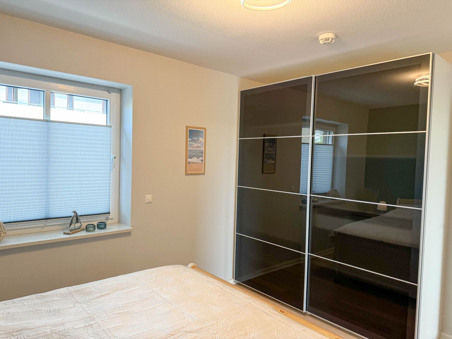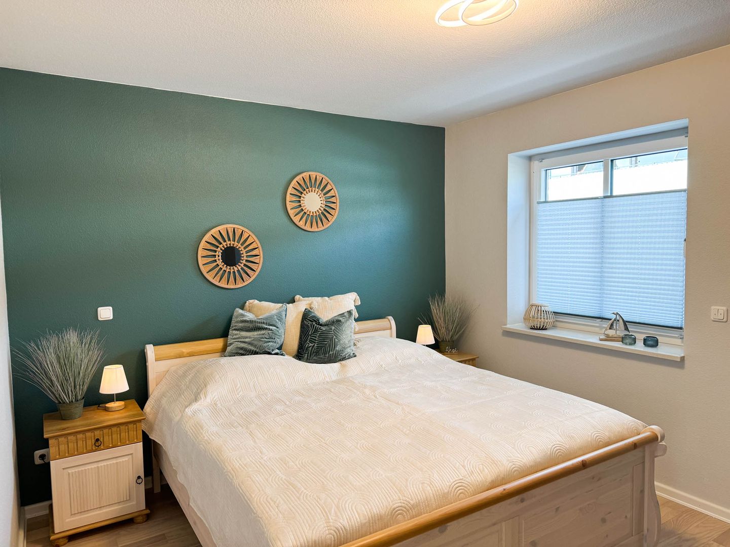 Das Schlafzimmer ist mit einem Doppelbett ausgestattet.