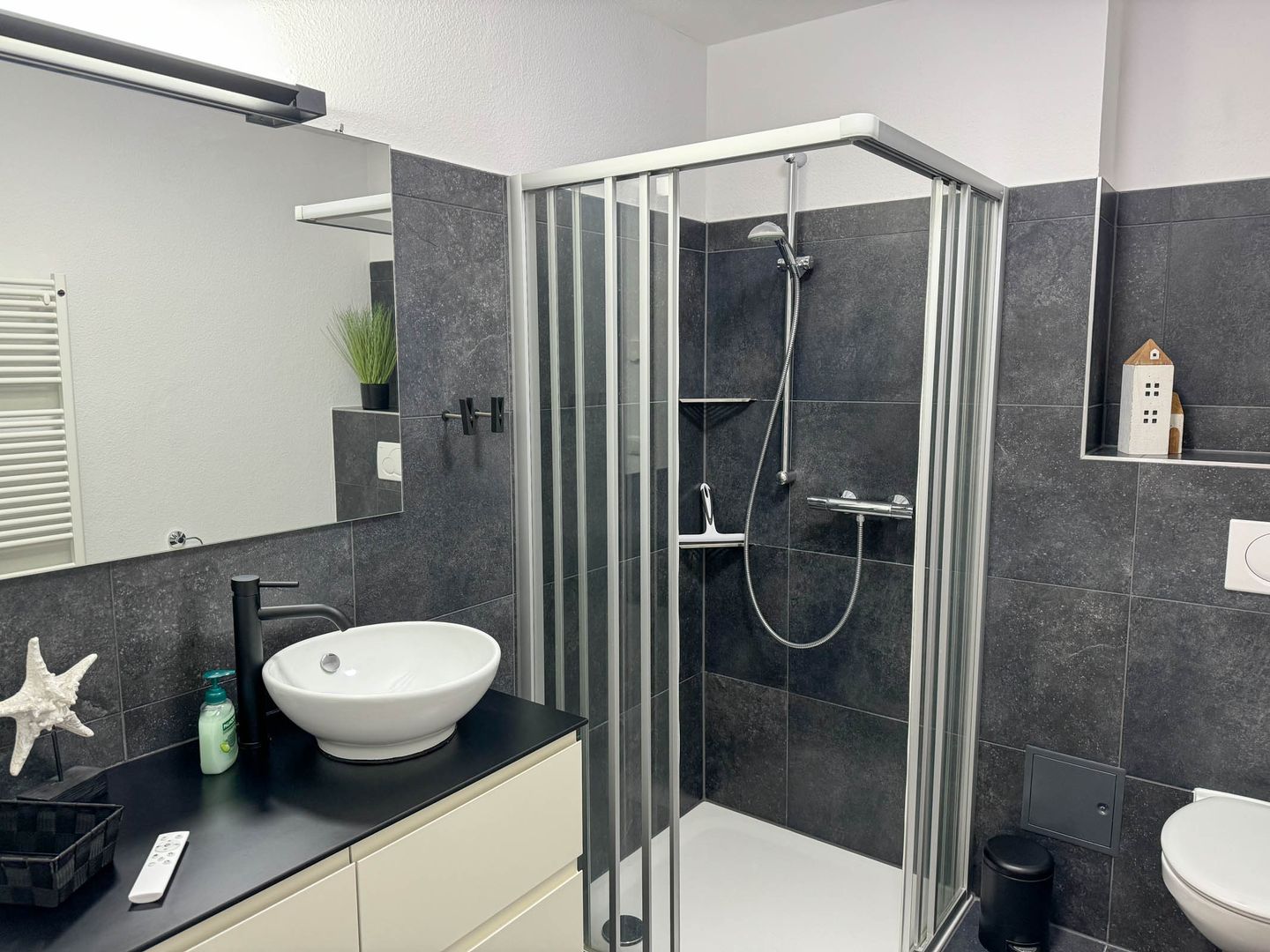 Sanitär: Duschbad mit ebenerdiger Dusche,1 x WC, Haar-Föhn, Kosmetikspiegel
