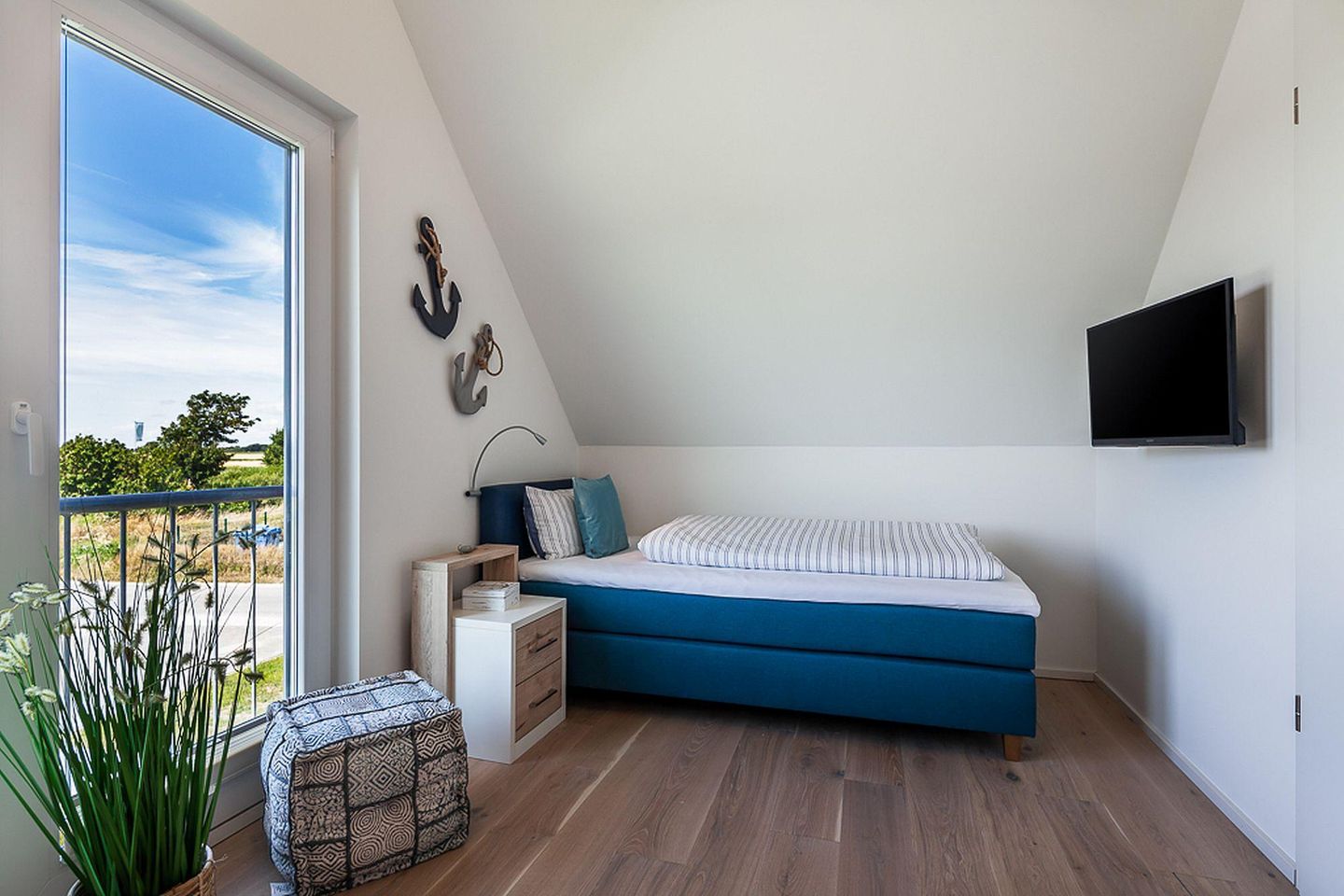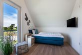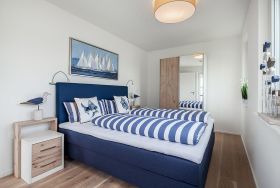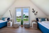 Den krönenden Abschluss für jeden Tag bereiten die Schlafzimmer. Hier können bis zu sechs Personen einschlafen. Alle drei Schlafzimmer verfügen über hochwertige Boxspringbetten und verführen zum eintauchen und zu gemütlichen Kuschelstunden. Es sind zwei Räume mit Doppelbett in der Größe 180x200 cm vorhanden und ein Raum mit zwei Einzelbetten in der Größe 90x200 cm. Alle Schlafzimmer verfügen über einen Flachbildfernseher. In der oberen Etage hat man einen wunderschönen Blick auf den Deich.