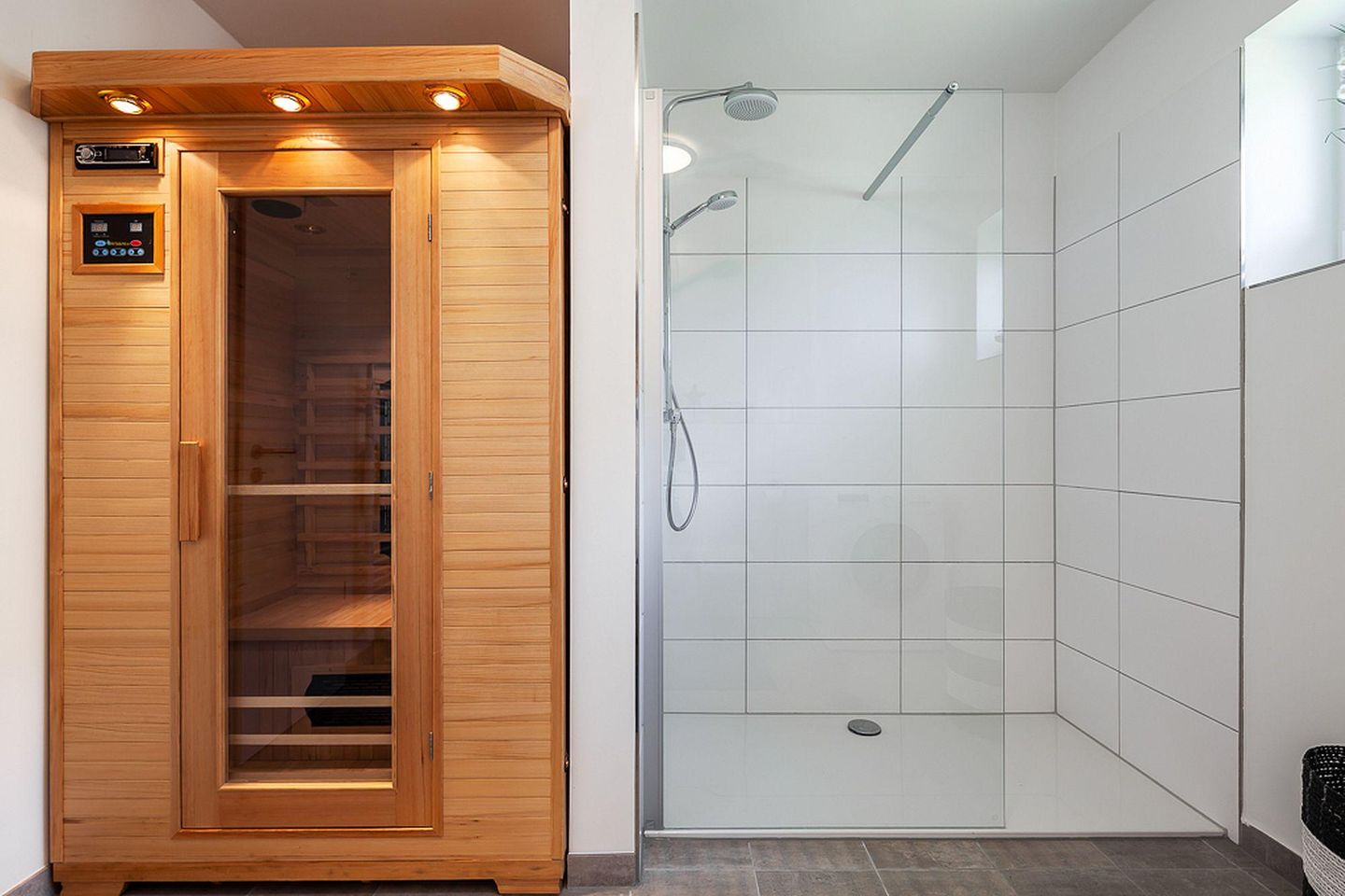 Das Wohlfühlen setzt sich im Badezimmer im Erdgeschoss gleich fort. Mit der bodenebenen Rainshower-Dusche und der zusätzlichen Saunakabine wird das Bad in ein kleines Spa verwandelt und Wellness-Feeling kommt auf. Das ist Tiefenentspannung für den Körper. Das Bad im Obergeschoss verfügt über eine Whirl-Badewanne zum Relaxen.