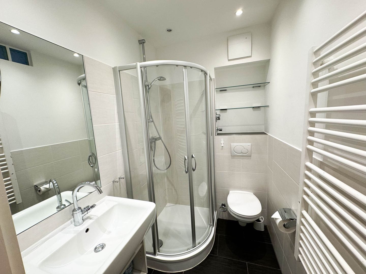 Sanitär: Duschbad, WC, Handtuchheizung, Föhn, Kosmetikspiegel