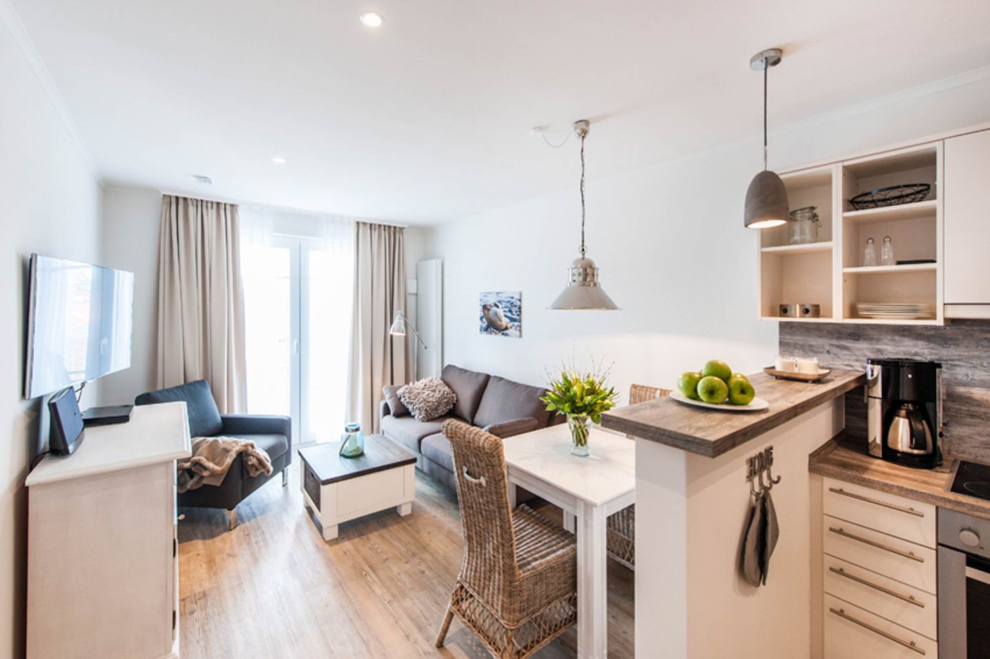 Das 50 m² Apartment ist geeignet für 2 Personen und befindet sich in dem Haus Weisse Villa direkt am Büsumer Hafen.
