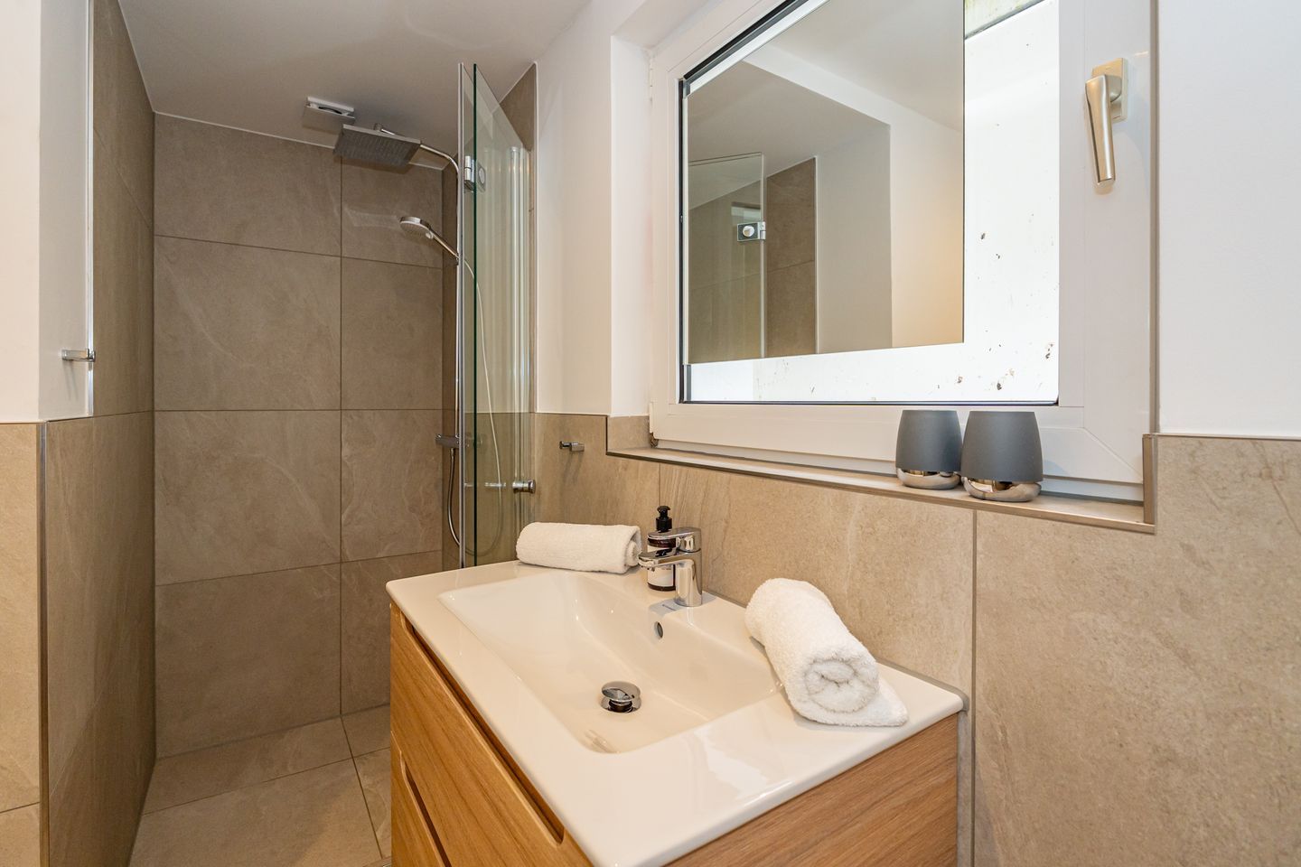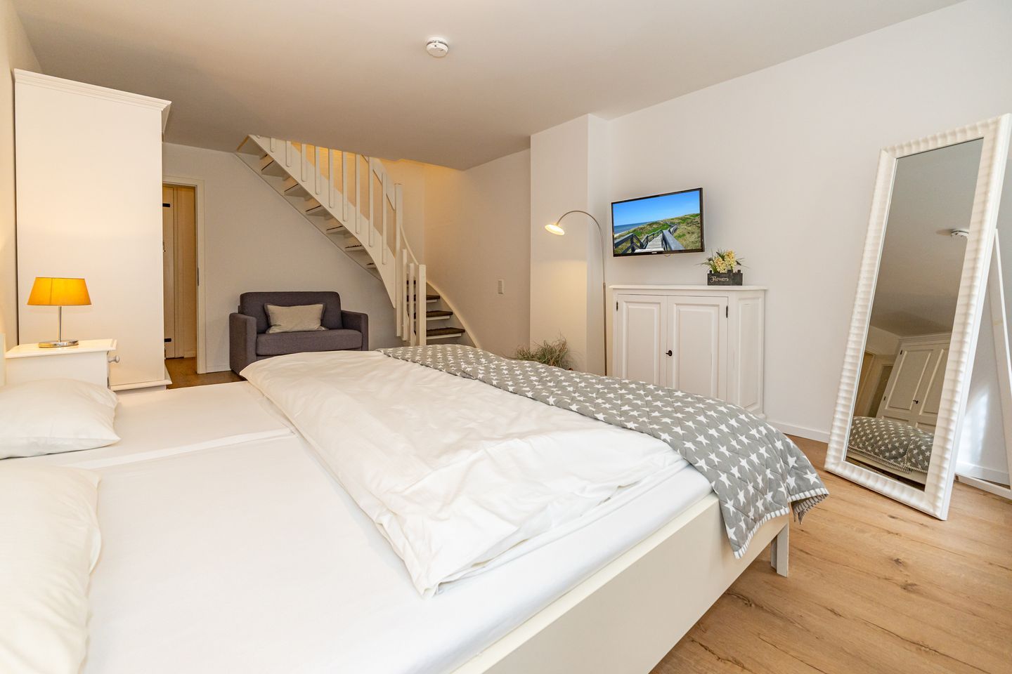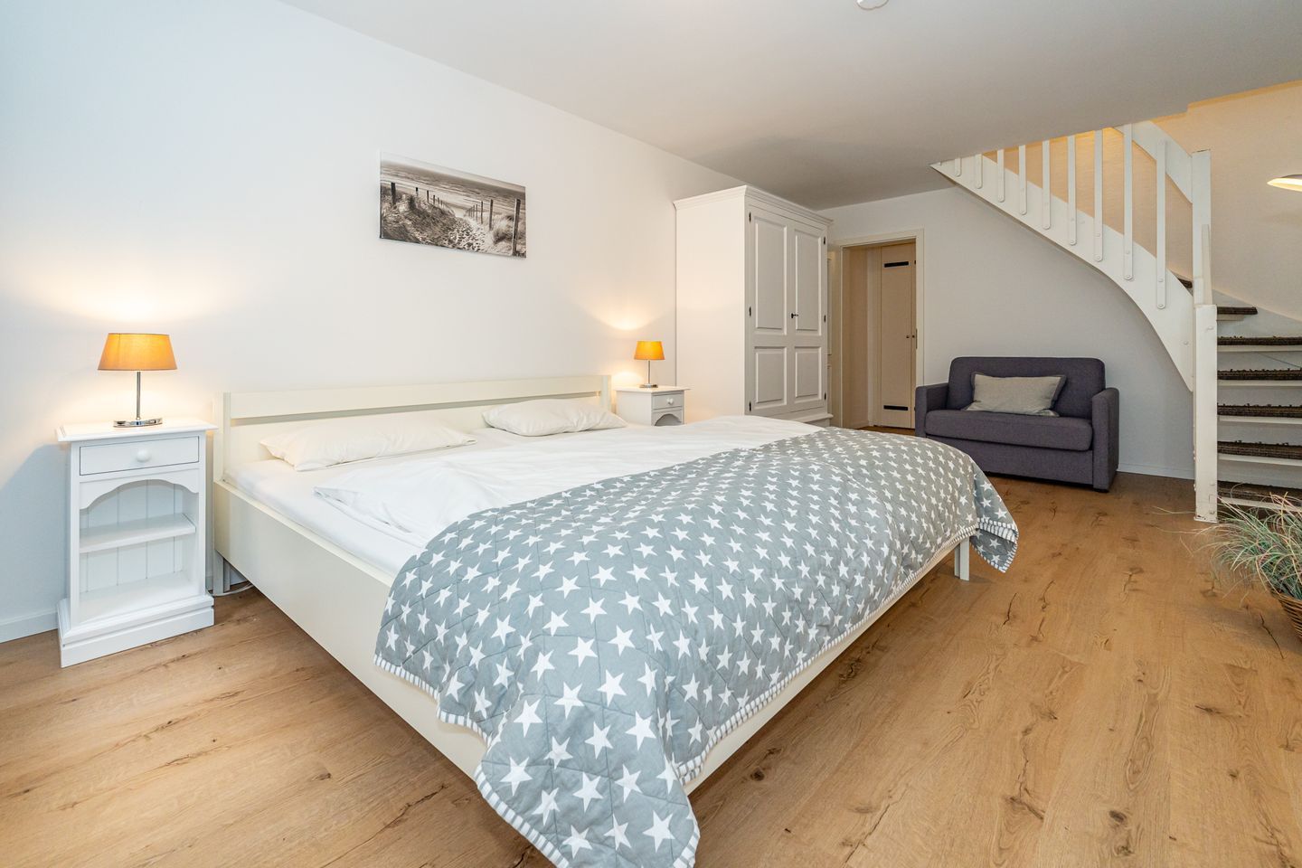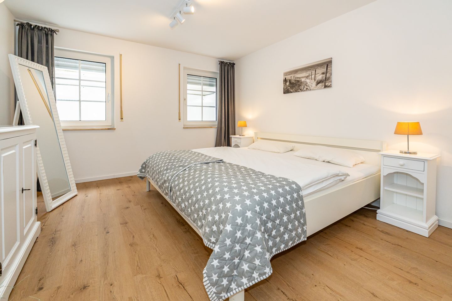 Vom Flur erreichen Sie über eine Treppe ins Souterrain das Schlafzimmer mit Doppelbett, Kleiderschrank, Schlafsessel und TV. Der Flur bietet nochmals viel Schrankfläche und führt direkt ins neu renovierte Duschbad. Im Gemeinschaftswaschraum steht eine Waschmaschine gegen Gebühr bereit. Zur Ferienwohnung gehört ein Pkw Stellplatz. Die Ferienwohnung bleibt Nichtrauchern vorbehalten. Ein guterzogener Hund ist nach vorheriger Anmeldung erlaubt (10,- € pro Tier/Tag).