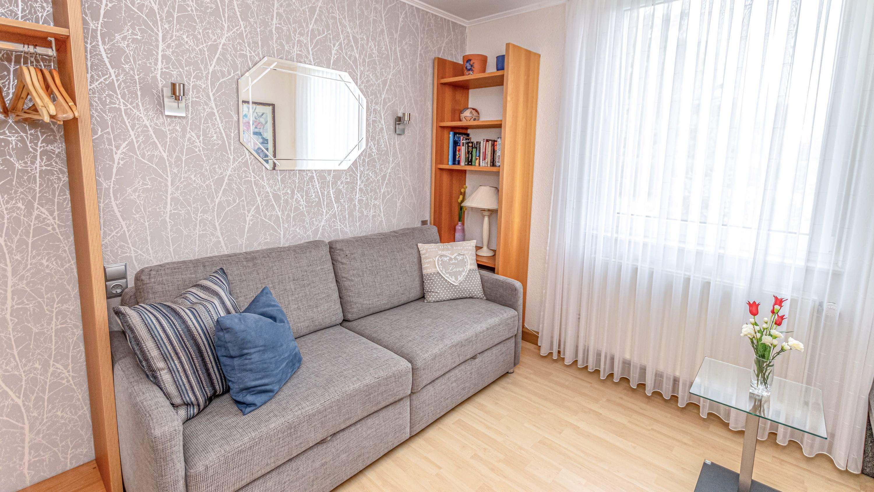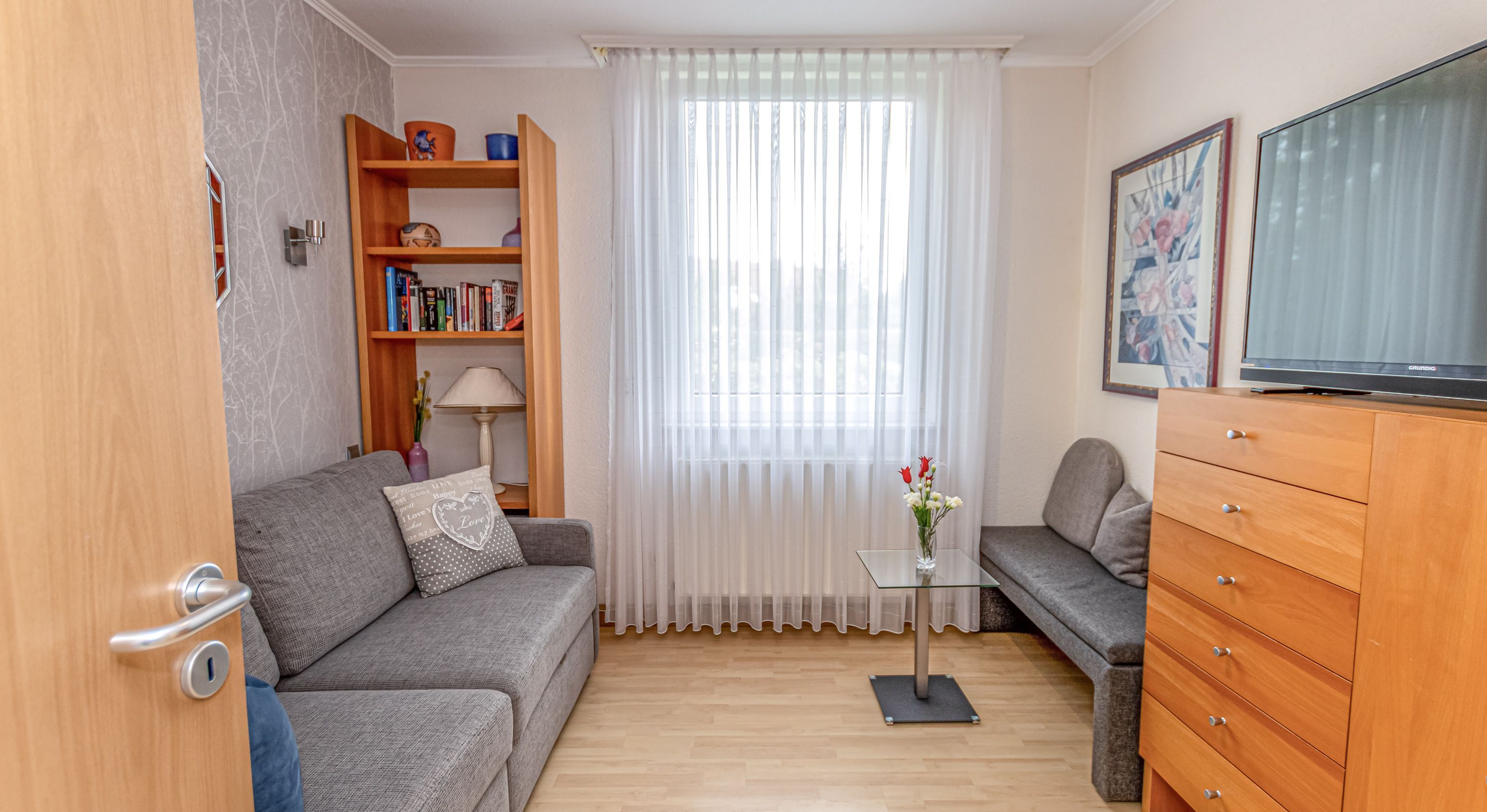 - zweites separates Lesezimmer mit Schlafcouch