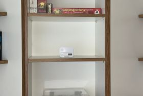 Das Wohnzimmer ist ausgestattet mit Brett- und Kartenspielen, Lesematerial (Bücher), als auch mit XXL Spielen für draußen. Für einen Homeoffice-Arbeitsplatz sind Bildschirm, Funktastatur und Mouse verfügbar.