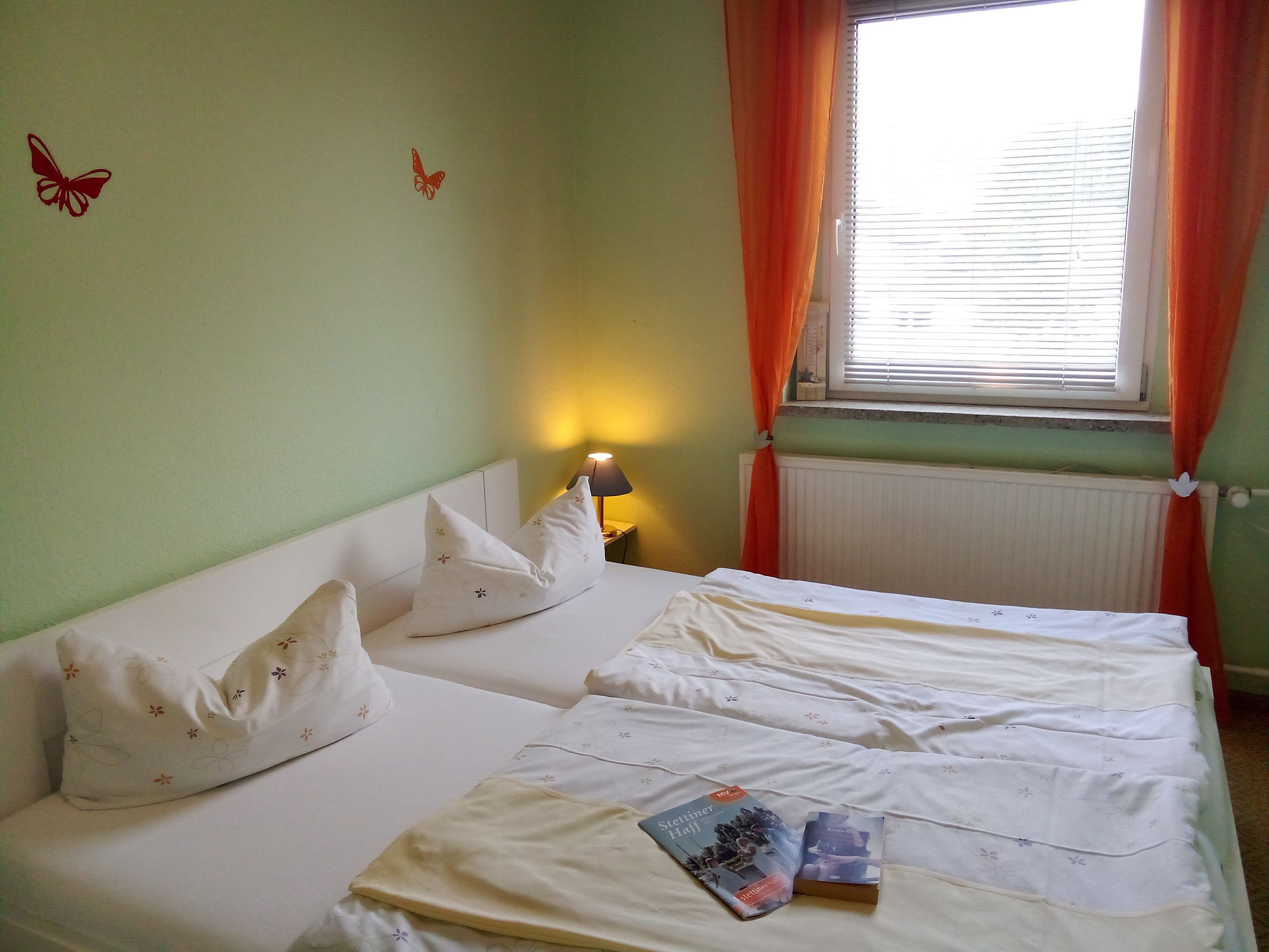 • Das Schlafzimmer mit Doppelbett (1.60x2.00m) ist separat über den Flur des Hauses erreichbar.