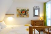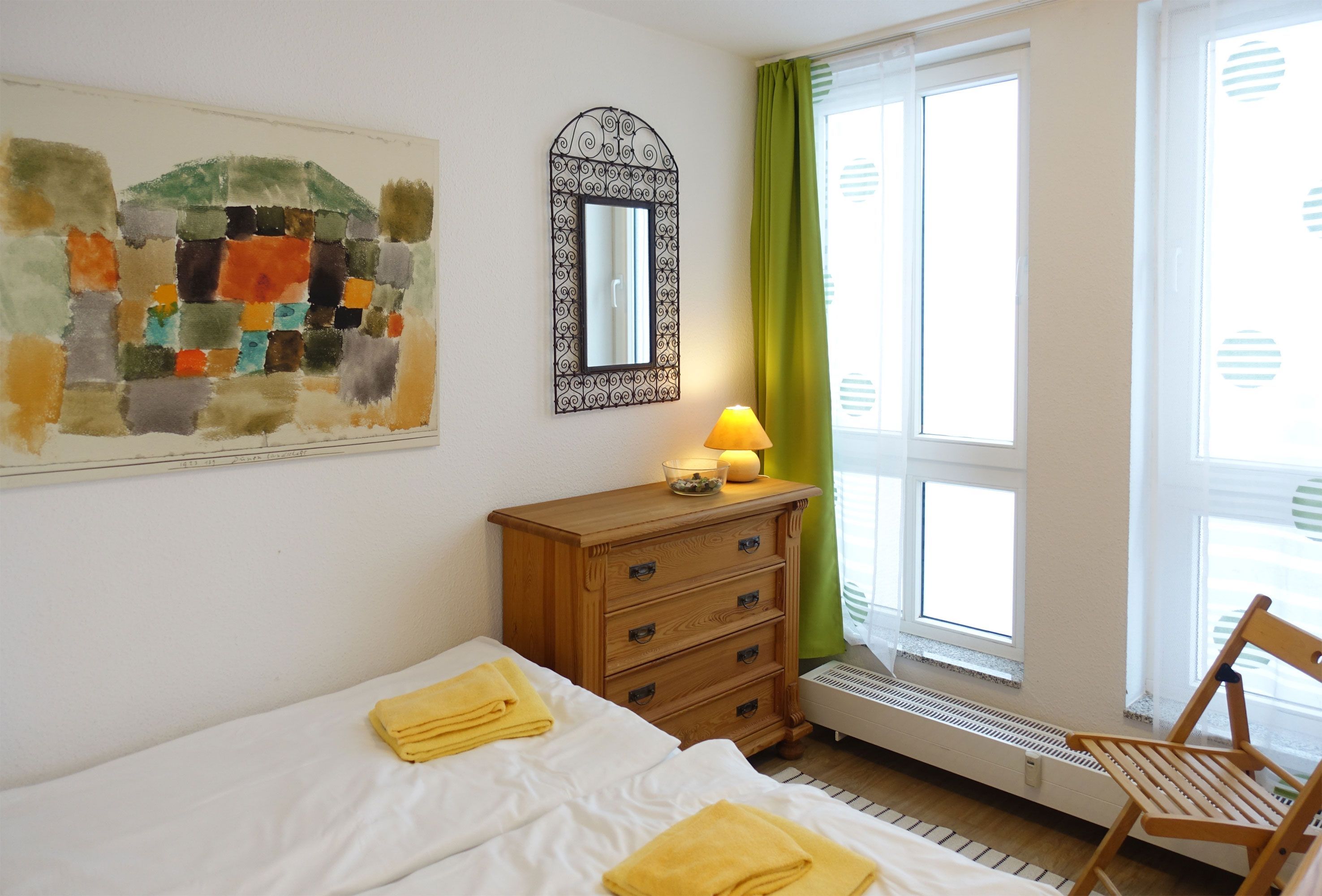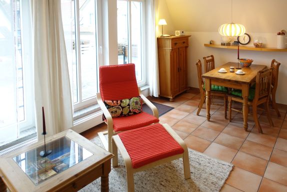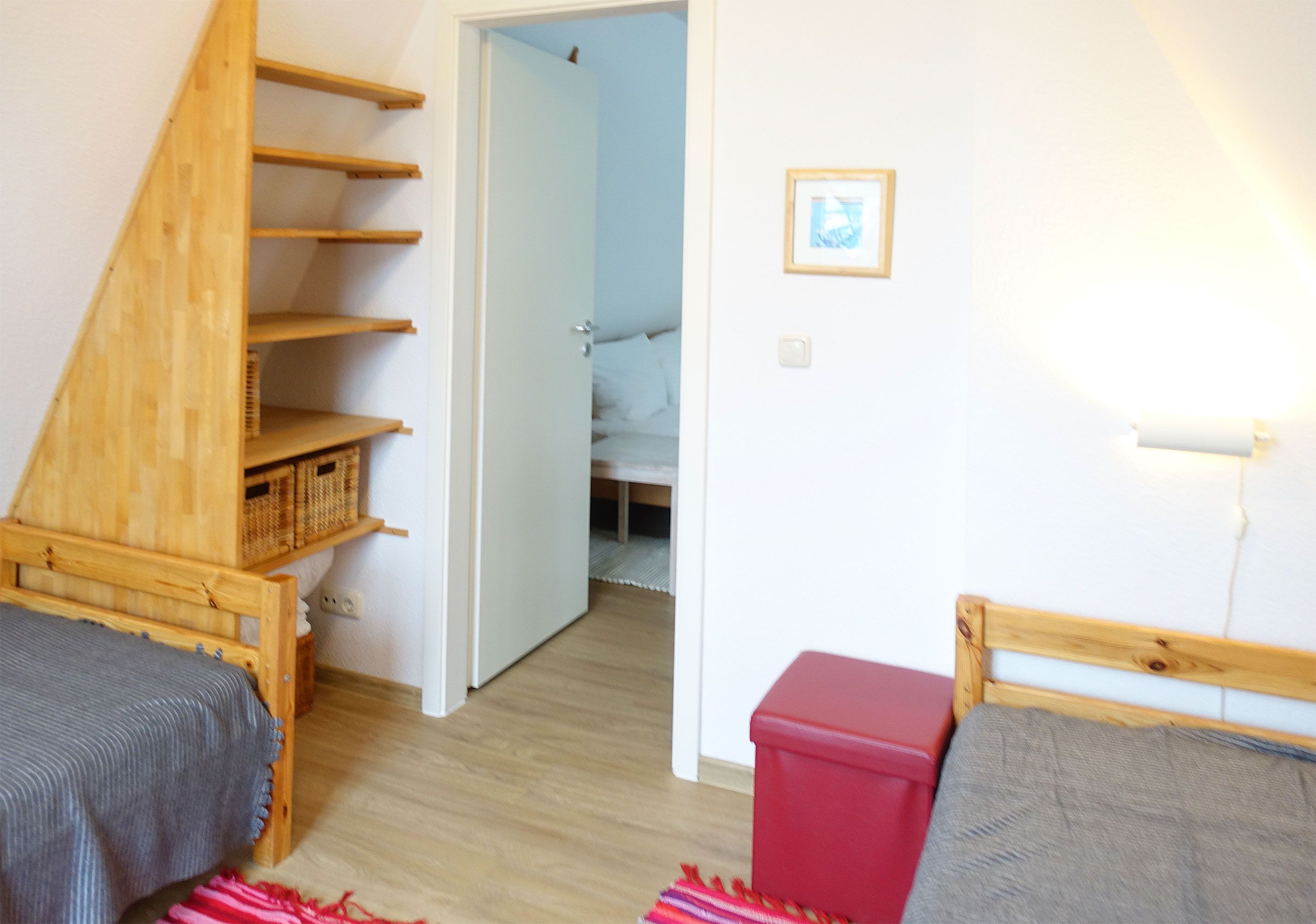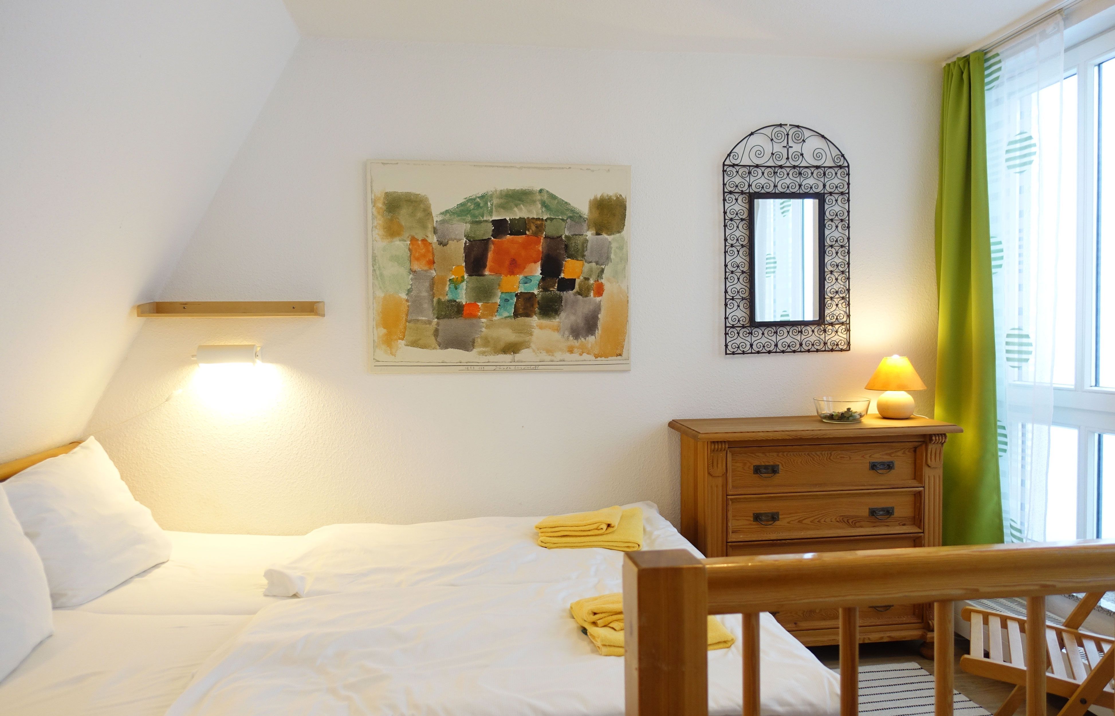 Ferienwohnung in Warnemünde mit zwei Ebenen für 2 bis 4 Personen, die liebevoll eingerichtet wurde. Sie liegt in der oberen Etage wie in einem eigenen Nurdachhaus.