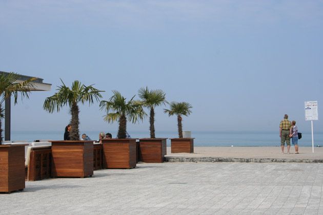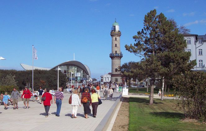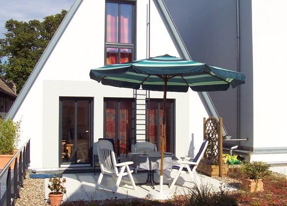 Die große sonnige Terrasse leigt rückwärtig zum alten Strom, der pittoreseken Hafenmeile von Warnemünde.