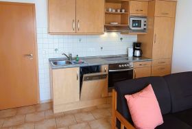Der offengestaltete Wohnraum verfügt über ein Sofa mit Schlaffunktion, TV und eine voll ausgestattete Küchenzeile. Das Schlafzimmer ist mit einem bequemen Doppelbett ausgestattet und das Bad hat eine Dusche mit flachem Einstieg und ein Haartrockner steht Ihnen ebenfalls zur Verfügung.