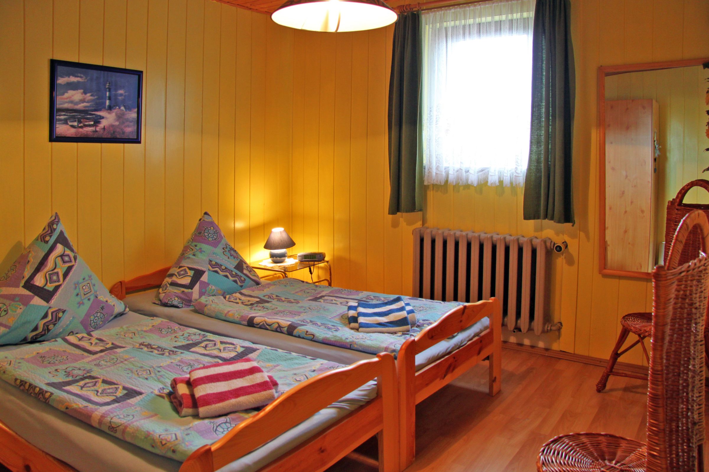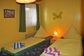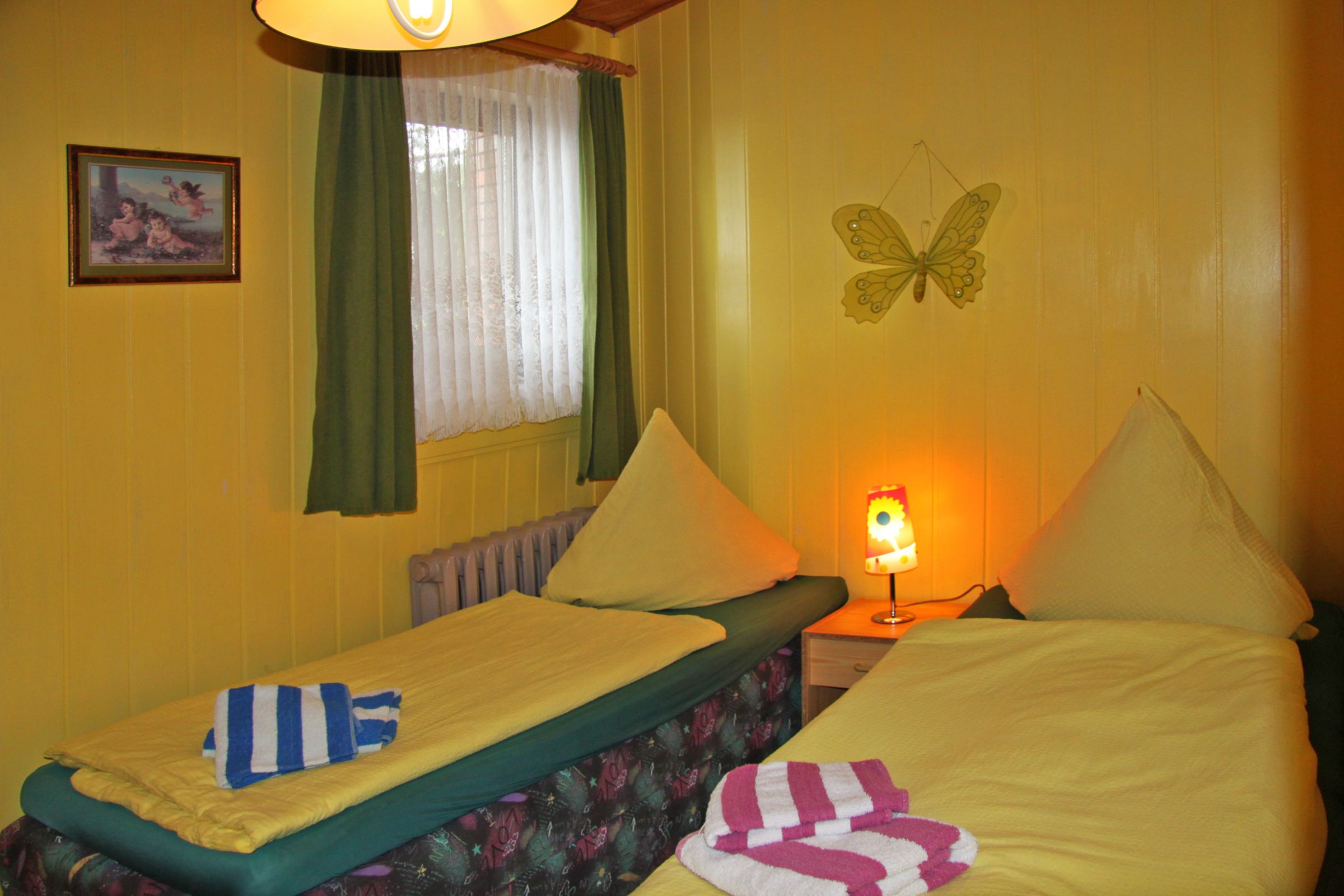 Ein Schlafzimmer ist mit einem Doppelbett (zusammengestellte Einzelbetten, 90x200) und das andere mit zwei Einzelbetten (80x190) ausgestattet. Die Ferienwohnung ist somit sehr gut geeignet für 4 Erwachsene bzw. einer Familie mit großen Kindern. Wir bitten darum nicht mit Kindern unter 4 Jahren anzureisen.