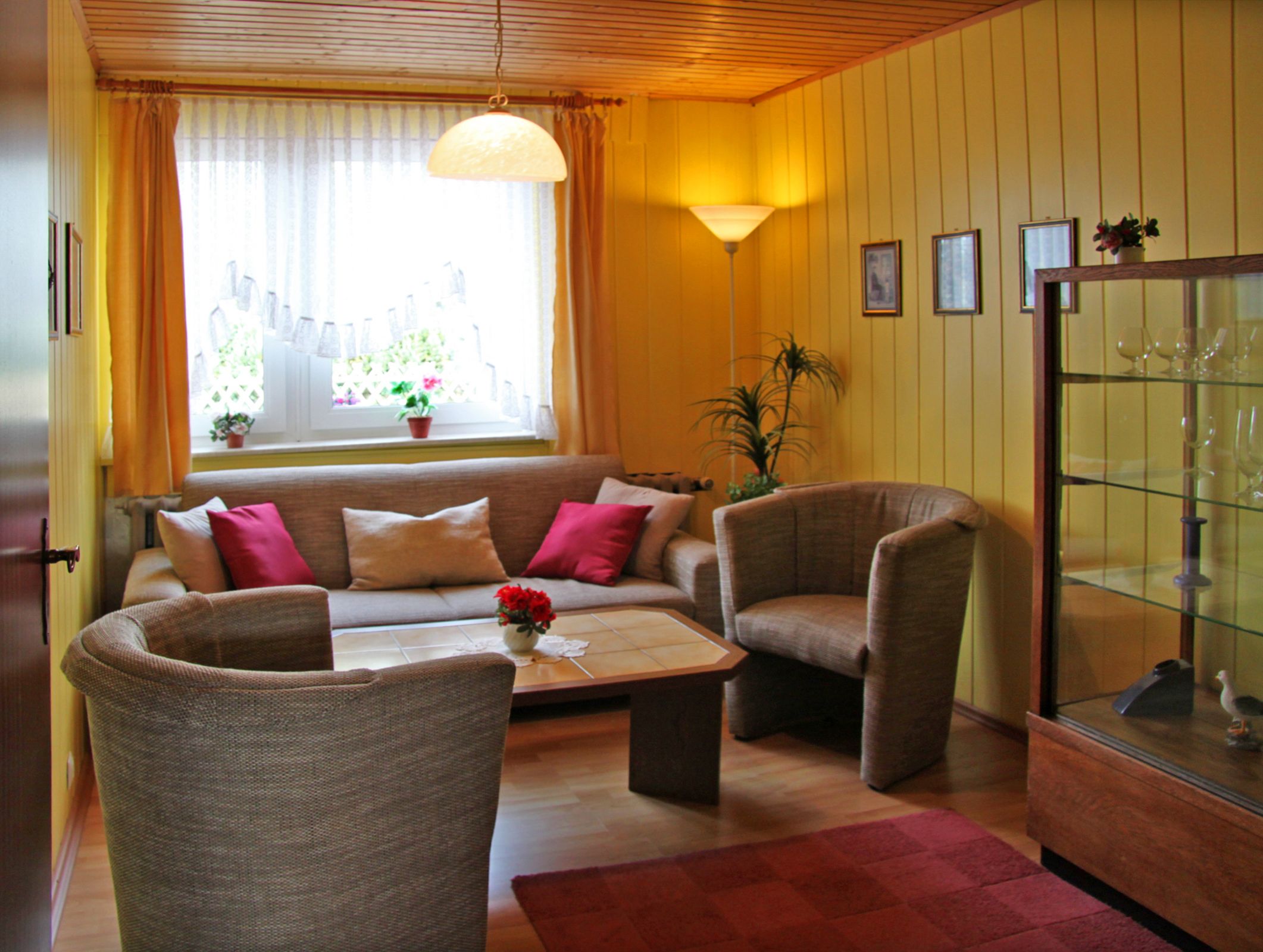 In der kleineren Ferienwohnung befinden sich auf 40 m² ein gemütliches Wohnzimmer mit Sitzecke und Sat-TV, Doppelbett-Schlafzimmer, voll ausgestattetem Küchenbereich und Dusche/WC.