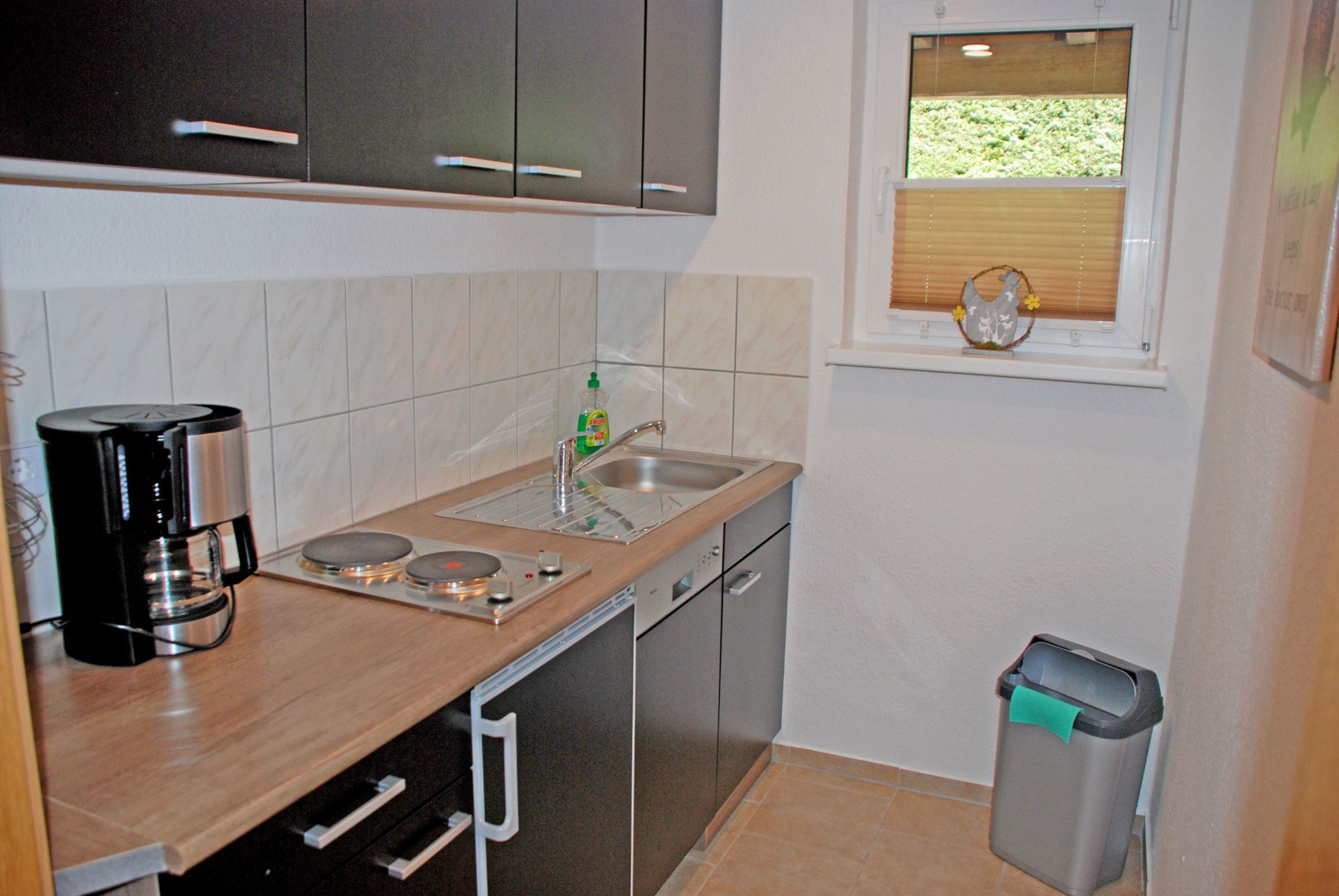Die Soutterain-Ferienwohnung ist liebevoll eingerichtet und verspricht eine angenehme Wohlfühlatmosphäre. Sie verfügt über eine moderne Küch mit Kochplatten, Kaffeemaschine, Geschirrspüler, Wasserkocher, Toaster, Kühlschrank. Im Wohnbereich befindet sich jeweils ein Flachbildfernseher.