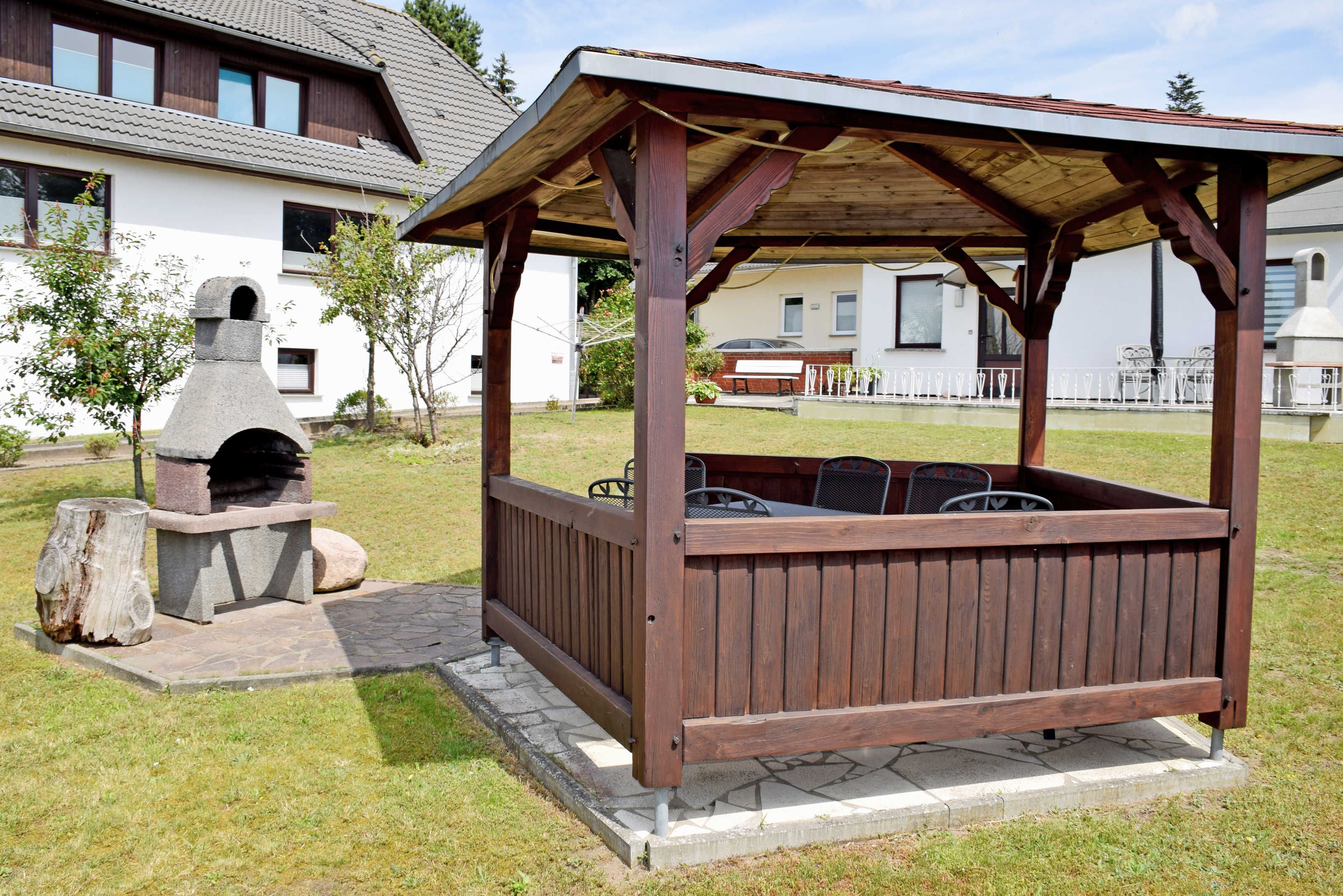 Neben dem Haus können in einem großen Garten ein Pavillon mit Gartenmöbeln und ein Grill mitgenutzt werden. Weitere Angaben finden Sie bei der Beschreibung der Ferienwohnungen.