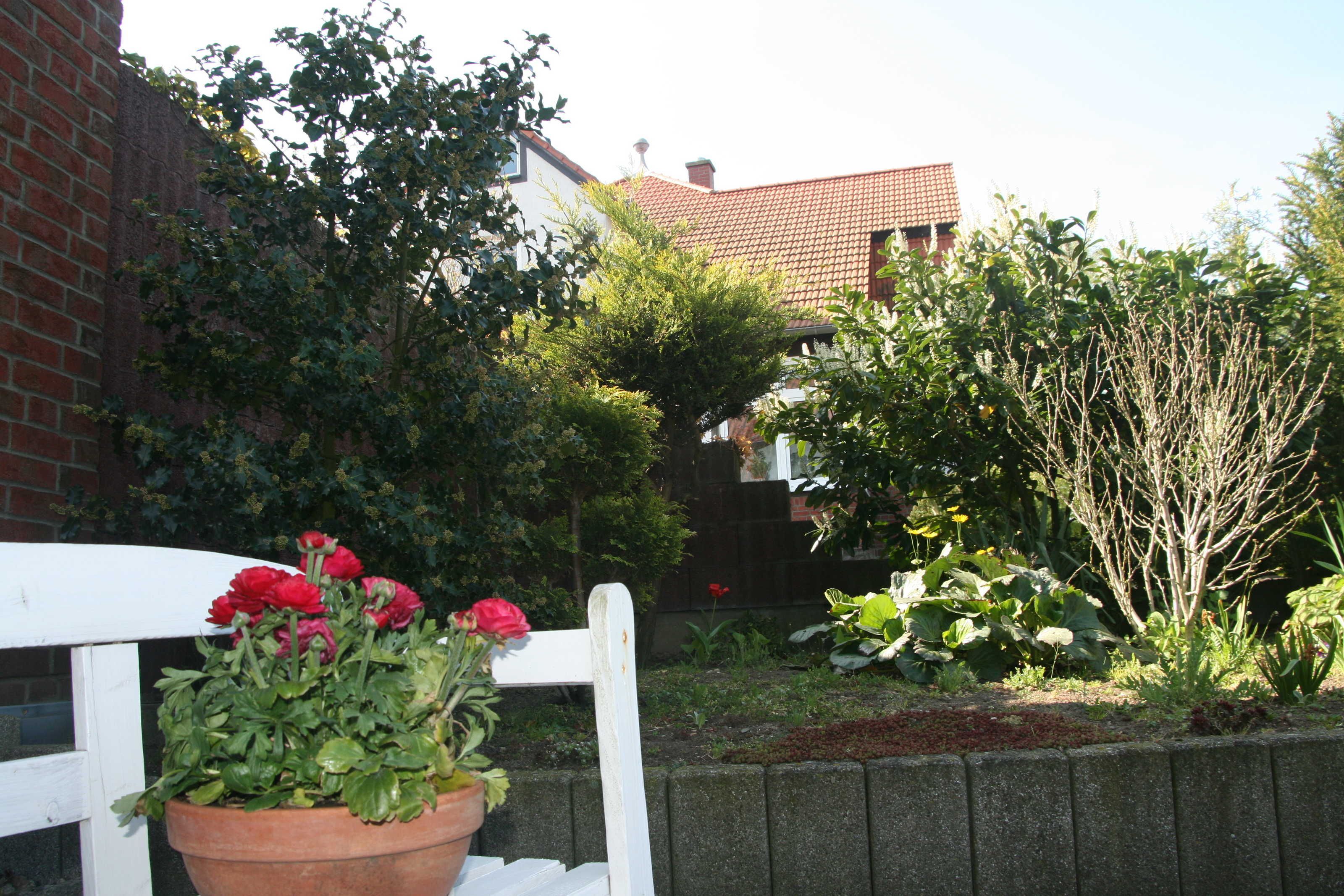 3.000m² Gartengrundstück mit eigener Grillterrasse. Hecken, Bäume und Sträucher rund um das Grundstück sorgen für Ruhe und Privatsphäre im Garten.