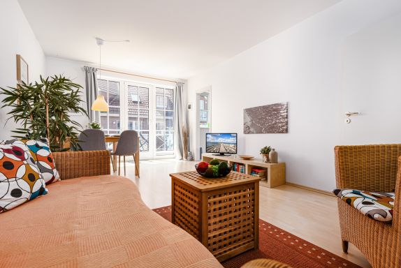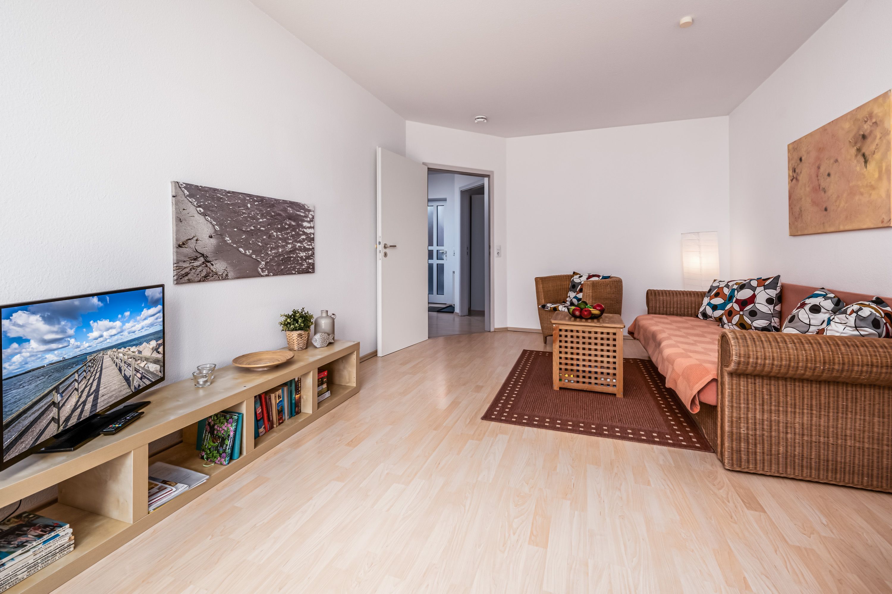 Das lichtdurchflutete und modern eingerichtete Feriendomizil Strandmöwe ist ca. 52m² groß und bietet für bis zu 4 Personen einen idealen Ausgangspunkt für Ihren Ostseeurlaub. Vom Flur aus gehen Sie in den Wohnraum, der über eine bequeme Sitzecke mit Kabel-TV sowie einen schönen Essbereich verfügt. Von hier aus gelangen Sie auf den Balkon, wo Sie Ihren erholsamen Urlaubstag entspannt ausklingen lassen und die Meeresluft genießen können.