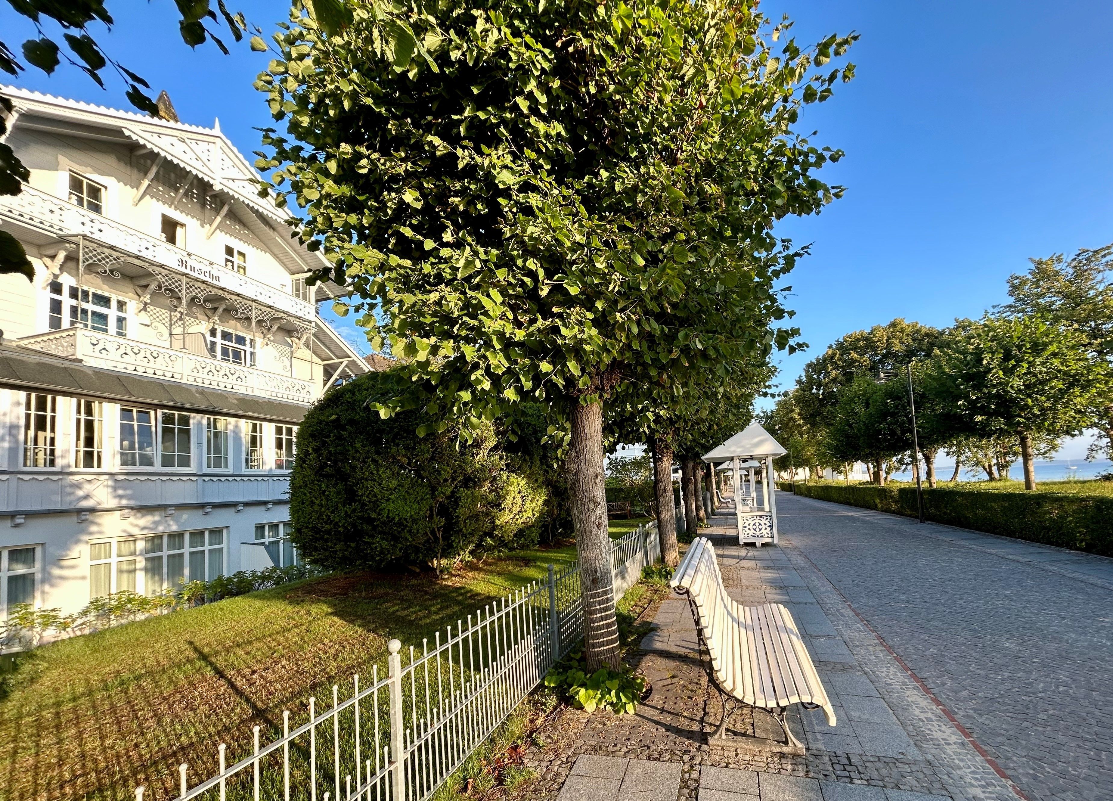 Der Strand und die Ferienwohnung sind nur durch 5 Stufen im Garten und die Binzer Strandpromenade getrennt.