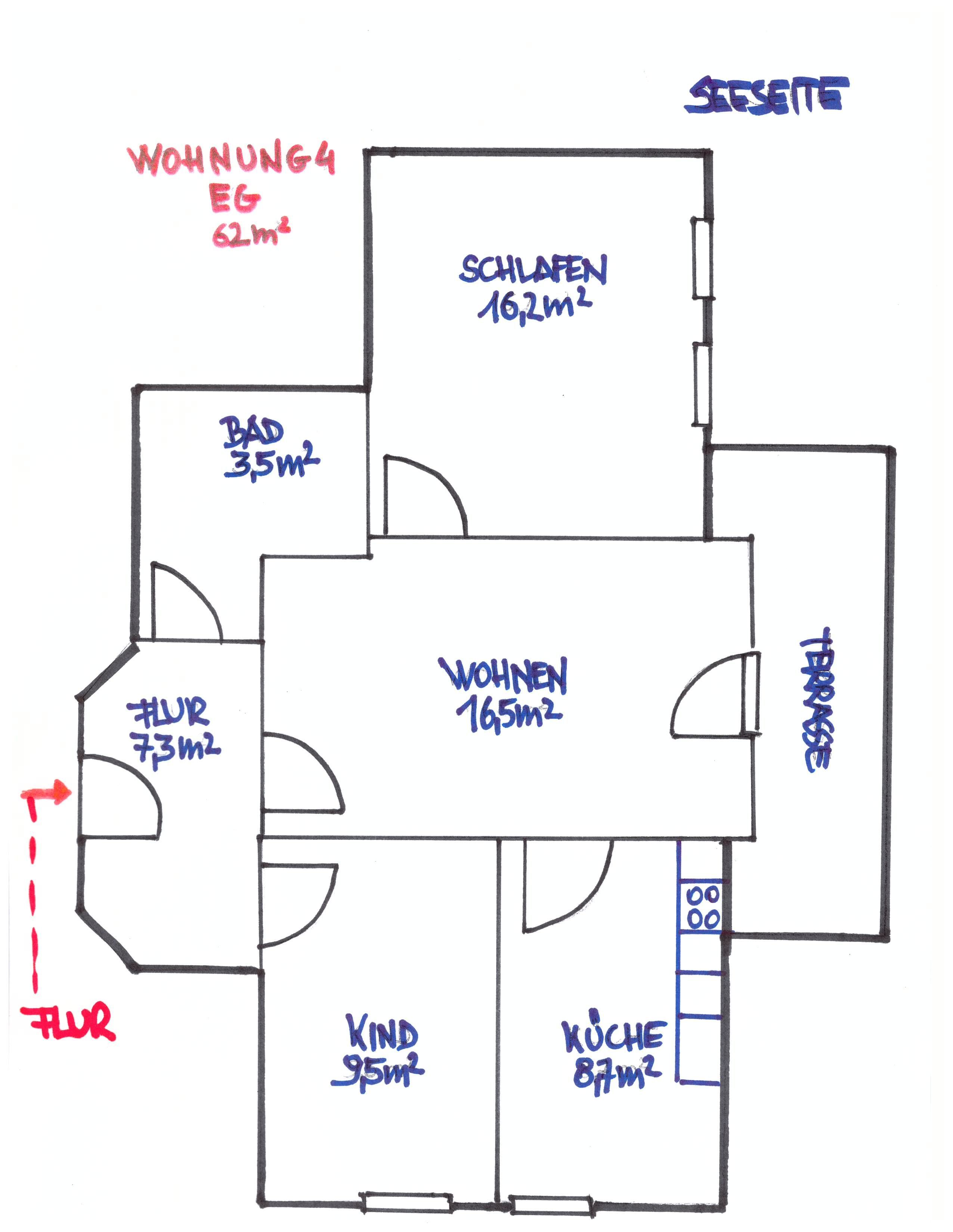 Die Wohnung ist ebenerdig und ohne Treppenstufen erreichbar.