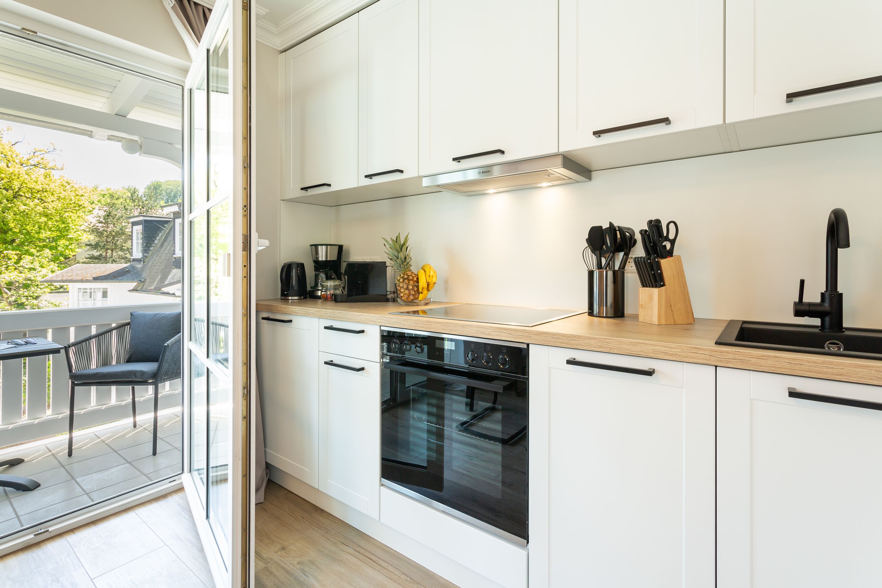 Die Küche ist mit Bosch Markengeräten versehen und voll ausgestattet - hier wird die Selbstverpflegung zum Kinderspiel.
