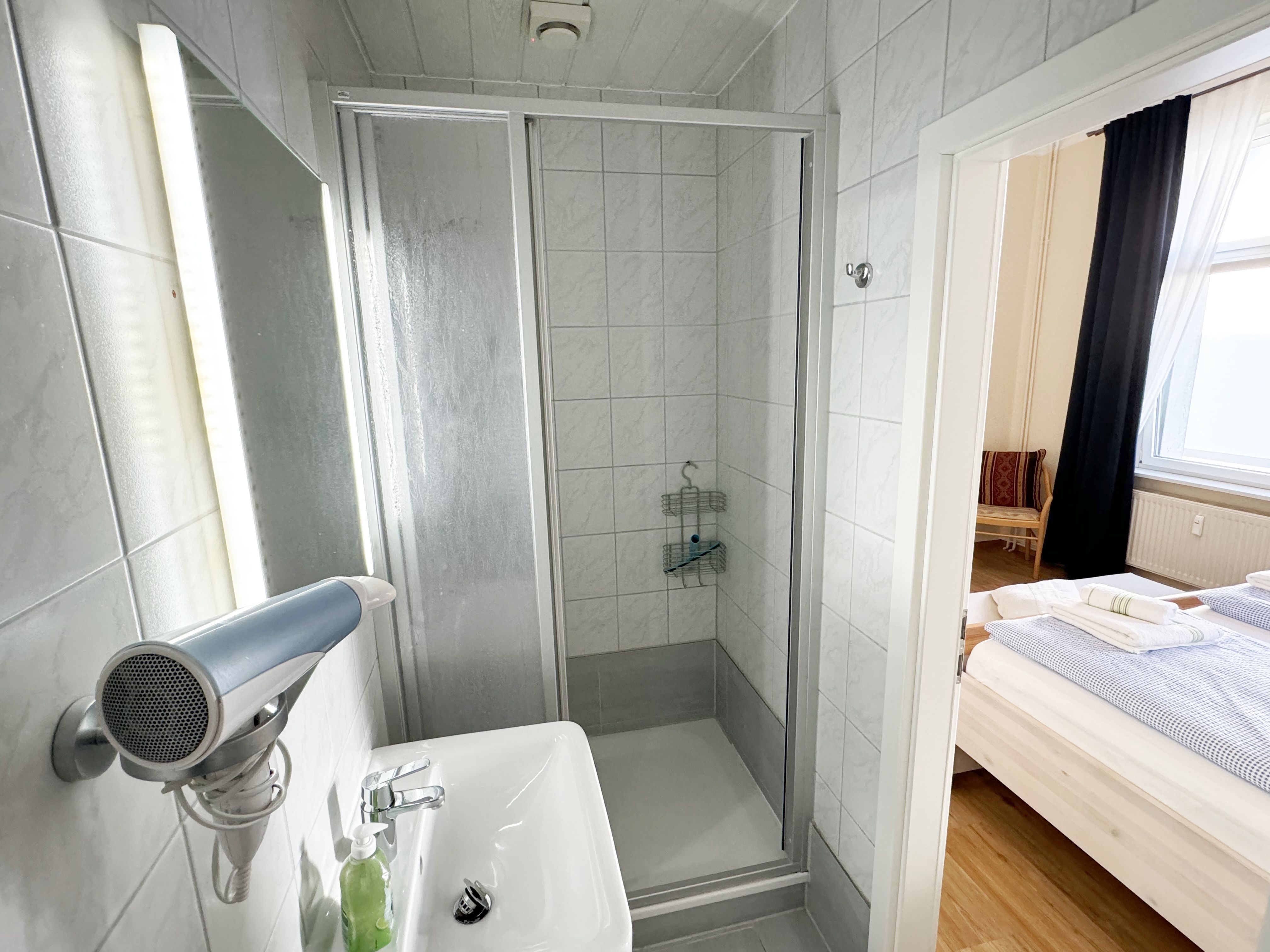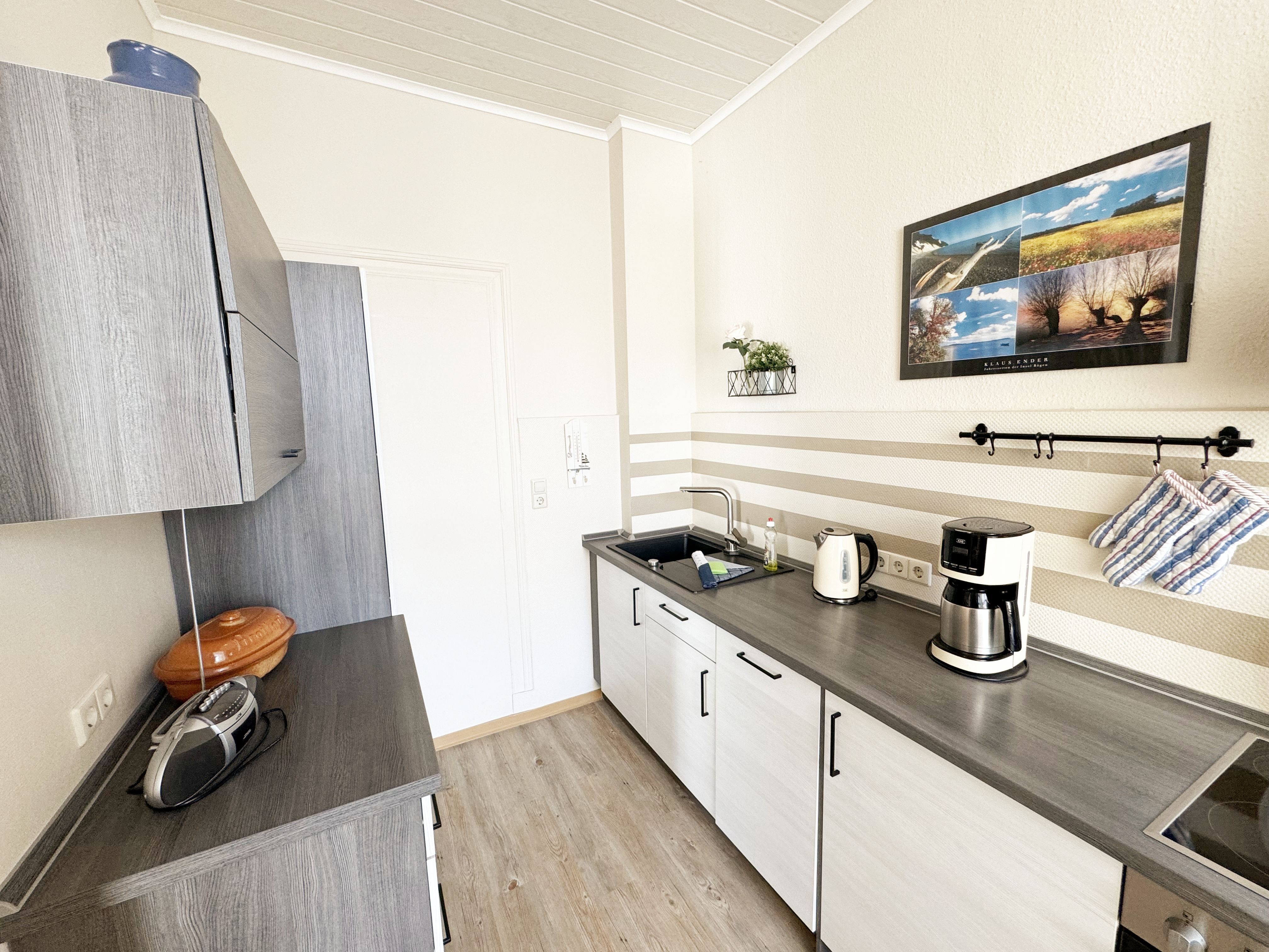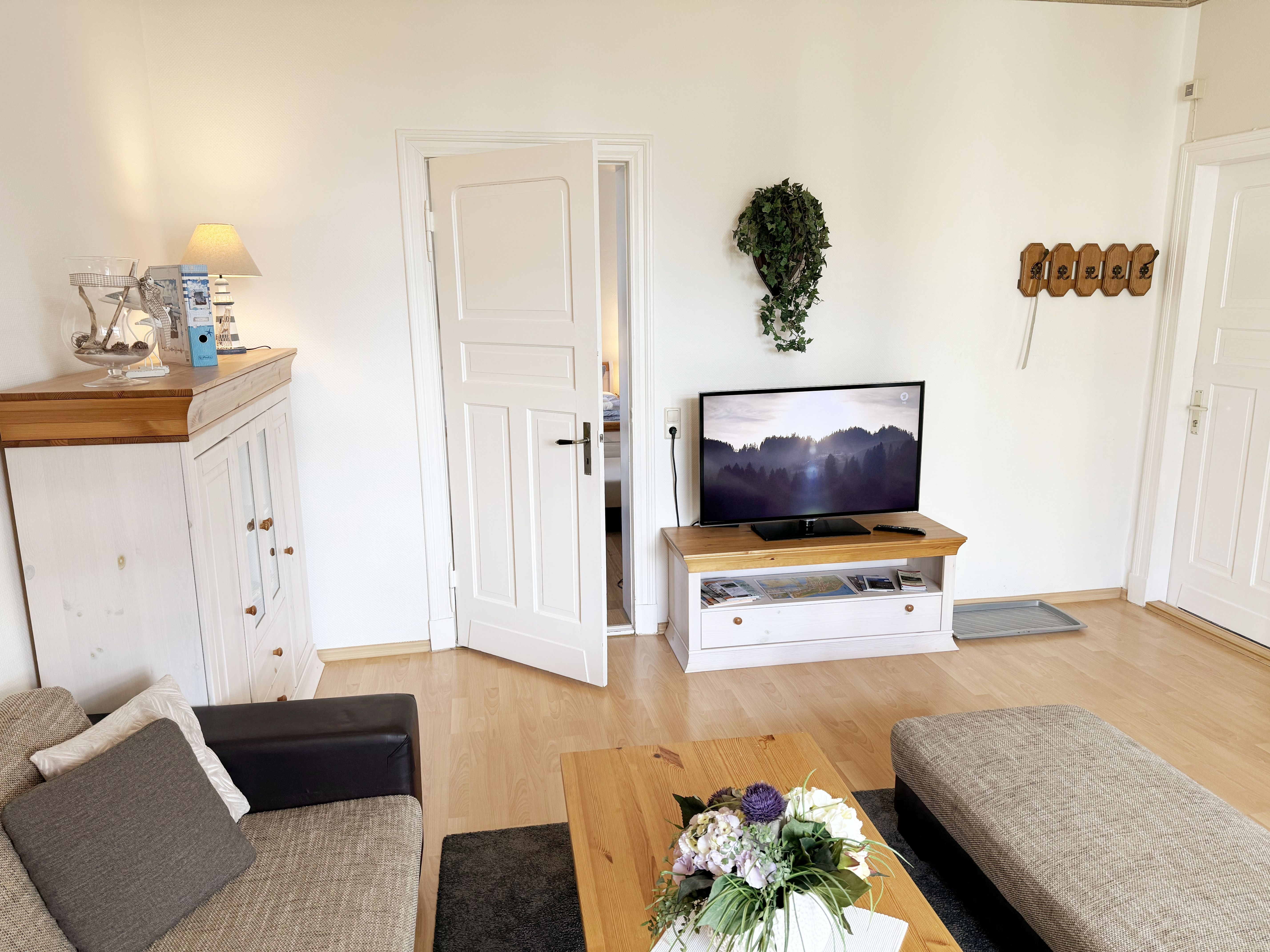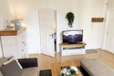 Über einen großzügigen hellen Flur gelangt man in die Ferienwohnung 2. Diese Ferienwohnung befindet sich in der 1. Etage und bietet mit seinen ca. 50 m² ausreichend Platz für maximal 2 Erwachsene + 1 Kleinkind bis 3 Jahre im Kinderreisebett. Mit seinen hohen Räumen genießen Sie den alten Charme dieser Villa. Die maritim eingerichtete Nichtraucherferienwohnung besteht aus einem großzügigen Wohnraum mit einer gemütlichen Couch, einem Couchtisch, einer Stehlampe sowie ein TV-Board mit Flachbild-TV. Auch auf einen Internetanschluss (WLAN) müssen Sie nicht verzichten. Dieser ist für Sie inklusive. Vom Wohnraum gelangen auf den großzügigen und überdachten Balkon (Westausrichtung) mit Sonnenschirm. Der Ihnen mit seiner Bestuhlung einen fantastischen Blick auf die Bäderarchitektur der Wilhelmstrasse bietet. Die separate Küche mit offener Eingangstür grenzt am Wohnraum. Die Ausstattung umfasst einen Herd mit Cerankochfeld, einen Backofen, einen Kühlschrank, einen Gefrierschrank, eine Spülmaschine, einem Toaster, einer Kaffeemaschine und einem Wasserkocher. Komplettiert wird der Raum durch einen gemütlichen Essplatz. Im Schlafzimmer befindet sich ein Doppelbett (1,80m x 2,00m), verstellbare Lattenroste, Nachttischablagen mit Beleuchtung, Ganzkörperspiegel, Insektenschutzgitter, Verdunklungsmöglichkeit und ein großer Kleiderschrank. Das kleine Bad befindet sich direkt neben dem Schlafzimmer und verfügt über einen Waschplatz, ein WC, eine Dusche mit flachem Einstieg, einen Kosmetikspiegel sowie einen Fön. Ein Staubsauger sowie ein mobiler Wäscheständer sind vorhanden. Für unsere kleinen Gäste stehen ein Kinderreisebett sowie ein Hochstuhl inklusive zur Verfügung. Haustiere sind nicht erlaubt. Ein PKW-Stellplatz (Nr.02) mit einer Höhe von max. 2,00m und einer Breite von 2,40m und eine abschließbare Fahrradunterstellmöglichkeit befinden sich direkt am Haus. Die Erstausstattung eines Wäschepaketes (komplette Bettwäsche, 1 Duschhandtuch, 2 kleine Handtücher) können Sie bis 14 Tage vor Anreise gegen einen Aufpreis dazu buchen oder durch eigenes Ergänzen. Ab 2 gebuchten Paketen erhalten Sie einmalig 1 Geschirrhandtuch und 1 Duschvorleger hinzu. Wir wünschen Ihnen einen traumhaften und angenehmen Urlaub an der Ostsee, erholen Sie sich gut.