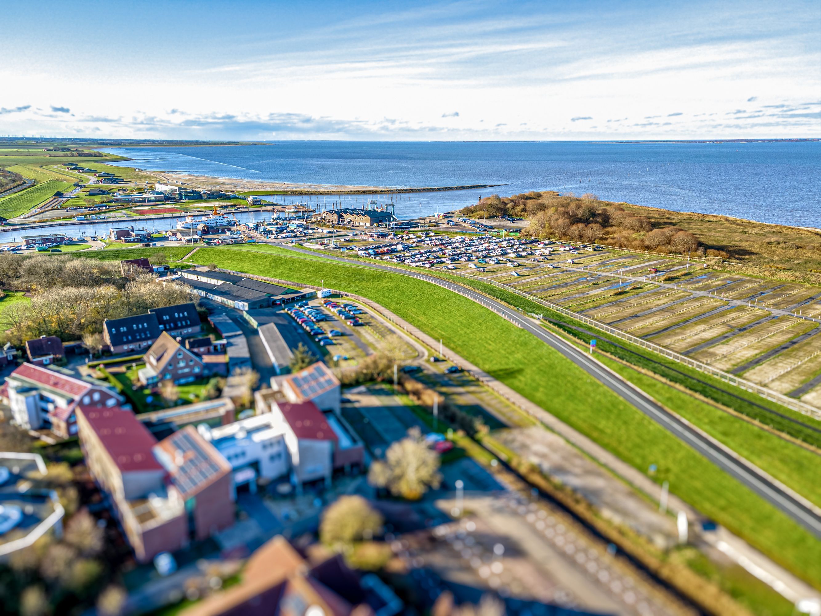 Nach ca. 200 Metern sind Sie schon am Deich und spazieren in einem kurzen Gang zum Hafen