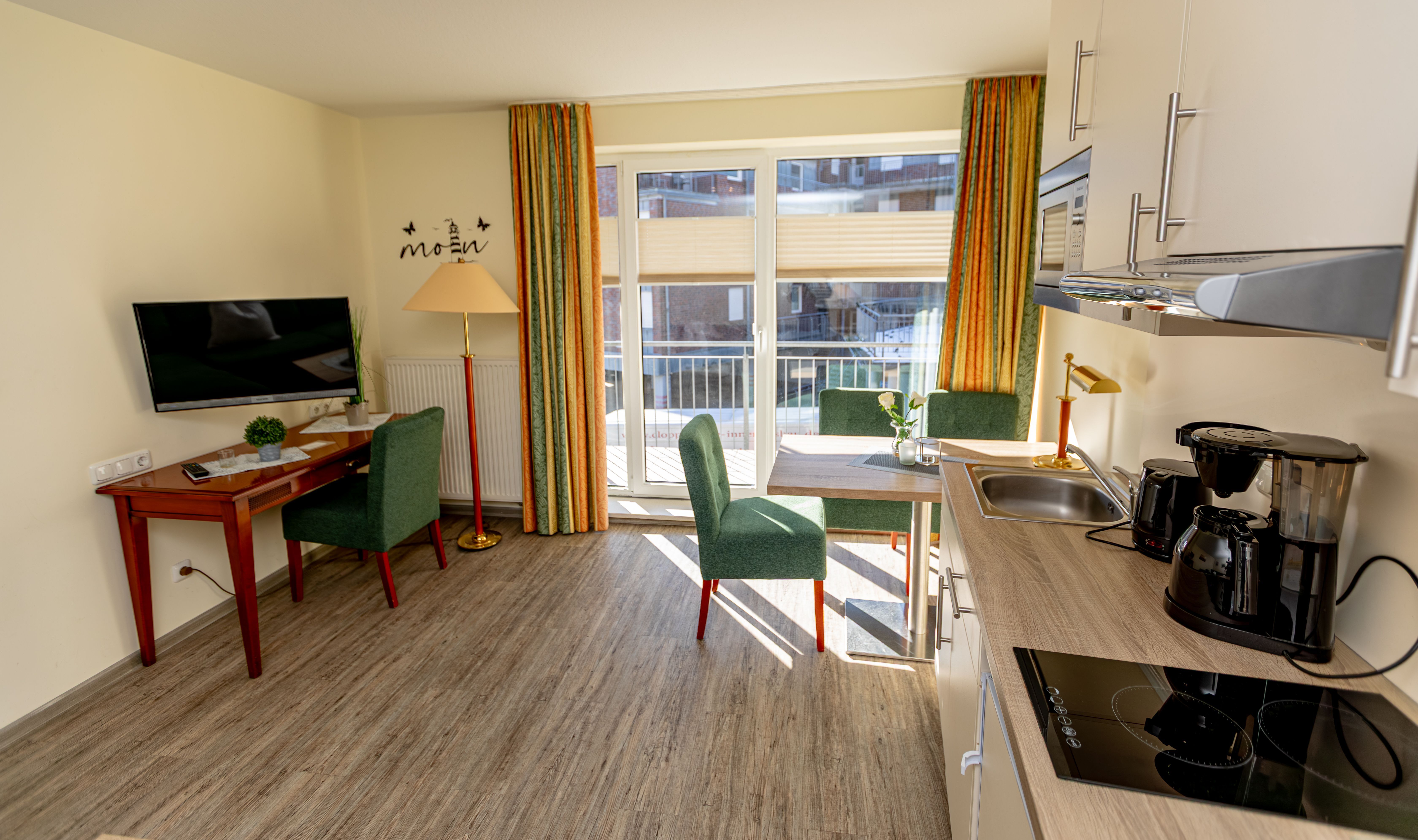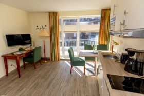 - Wohn- und Schlafraum mit integriertem Küchenbereich.