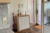 Die offene Küchenzeile verfügt über Kühlschrank mit Gefrierfach, Mikrowelle, Geschirrspüler, Kaffeemaschine, Toaster, Wasserkocher und diversen Küchenuntensilien.