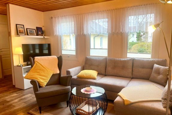 Im Wohnzimmer befindet sich eine gemütliche Eckcouch mit Sessel, Flachbildschirm-TV, Radio und Wlan ist kostenfrei vorhanden.
