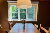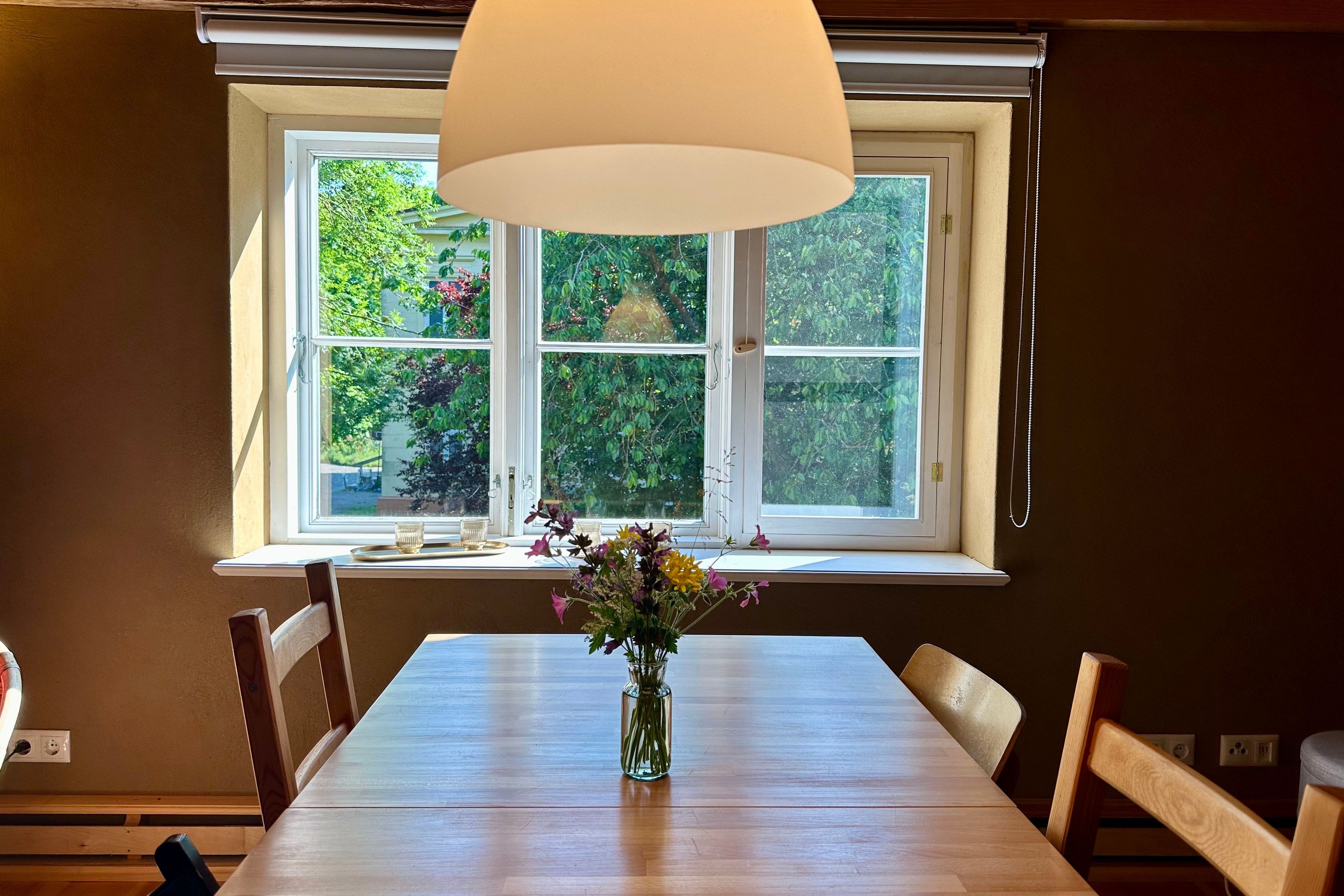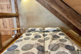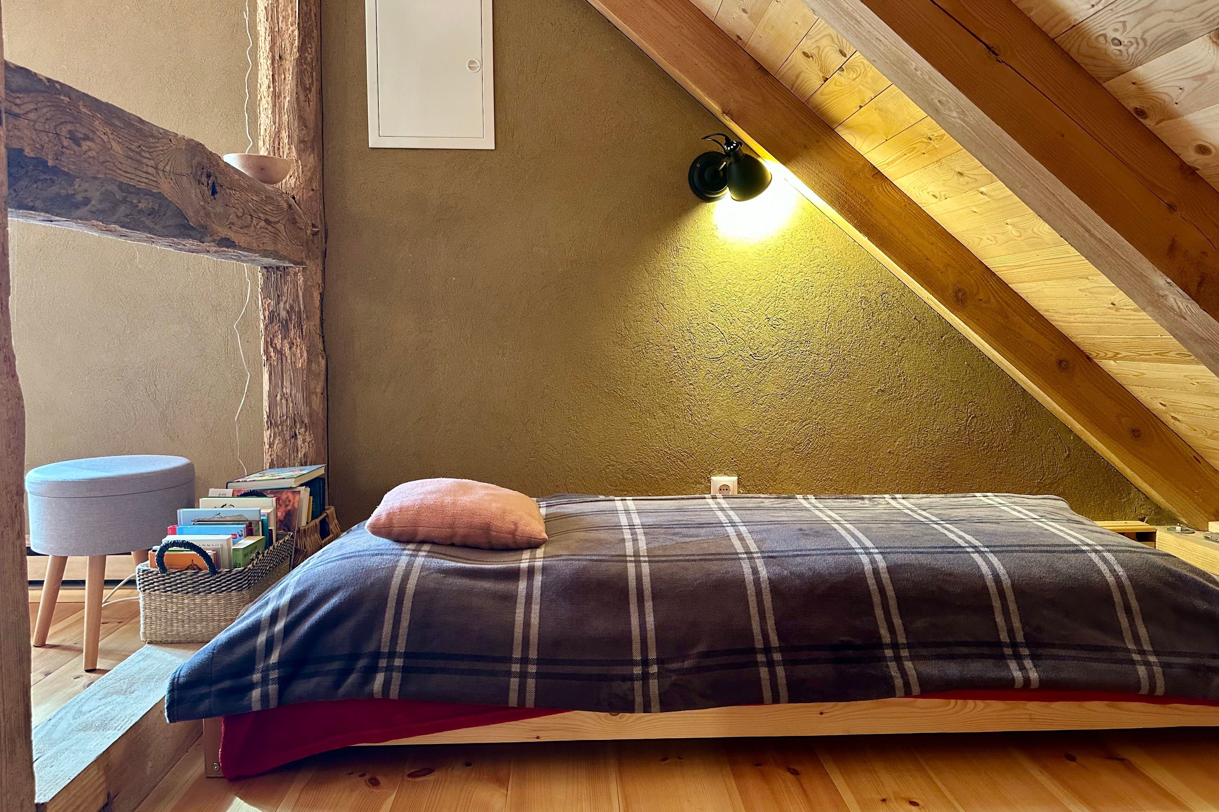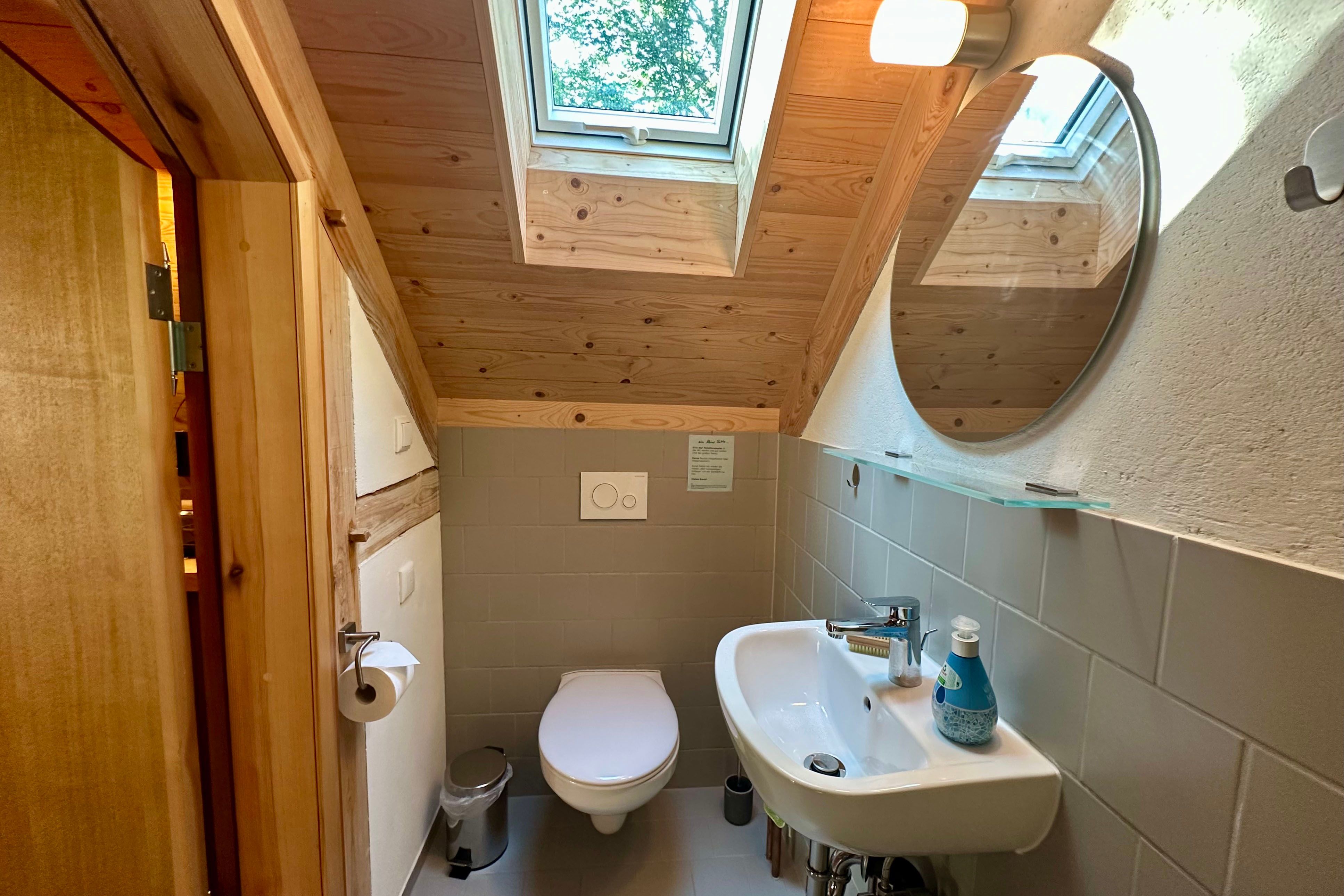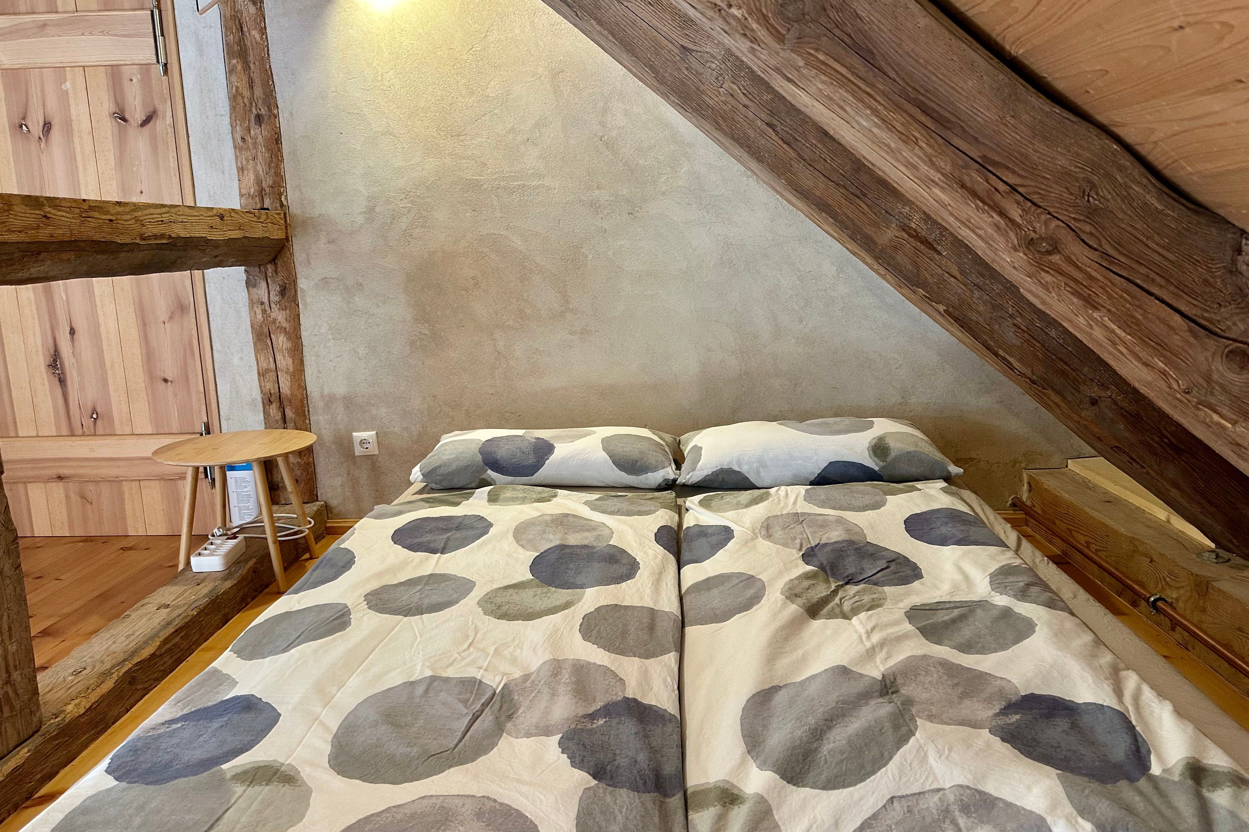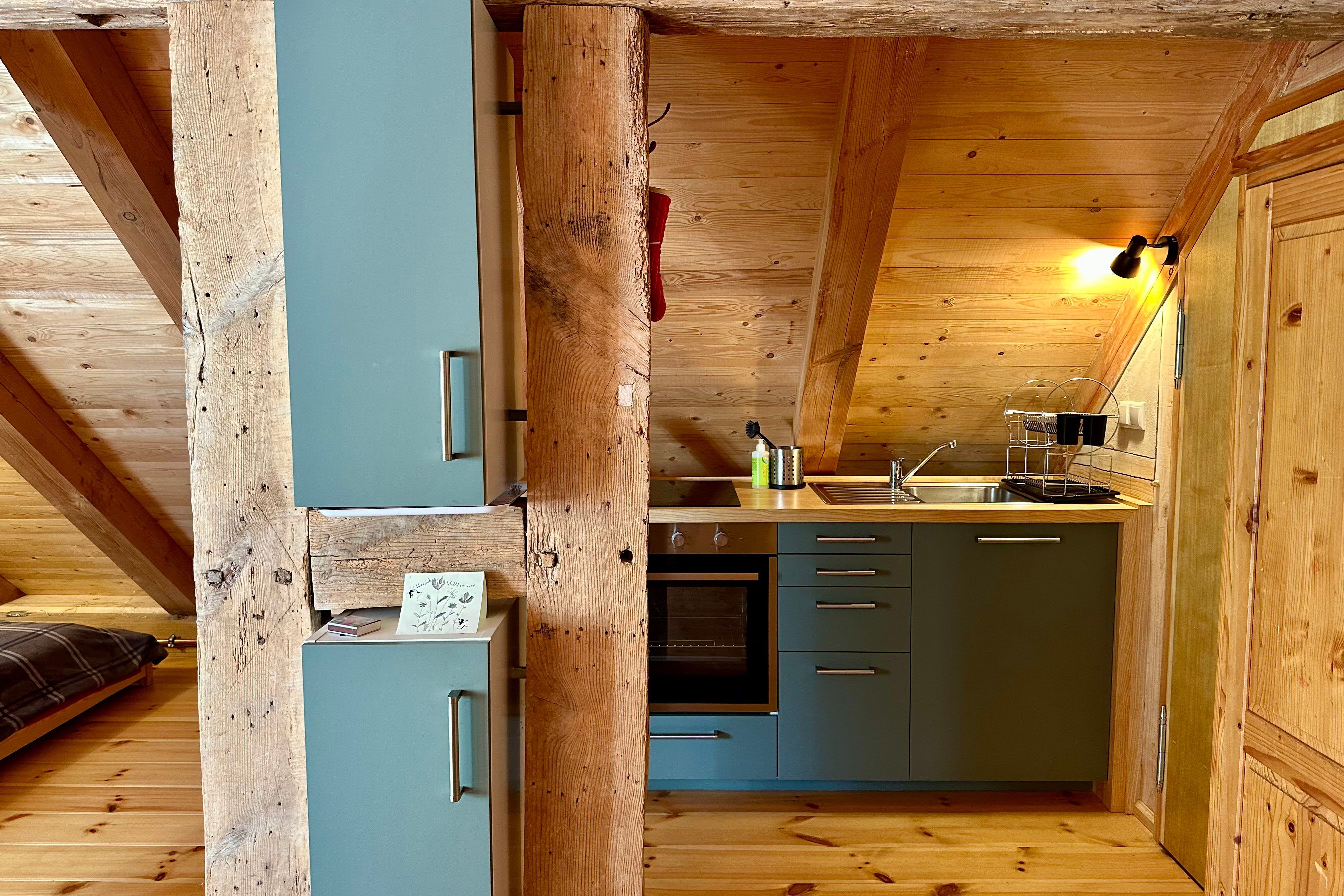 Die charmante Dachgeschosswohnung erreichen Sie über eine rustikale Holztreppe. Die Wohnung wurde im Fachwerkstil mit viel Holz und nachhaltigen Materialien liebevoll saniert, wodurch eine gemütliche und einladende Atmosphäre entsteht.